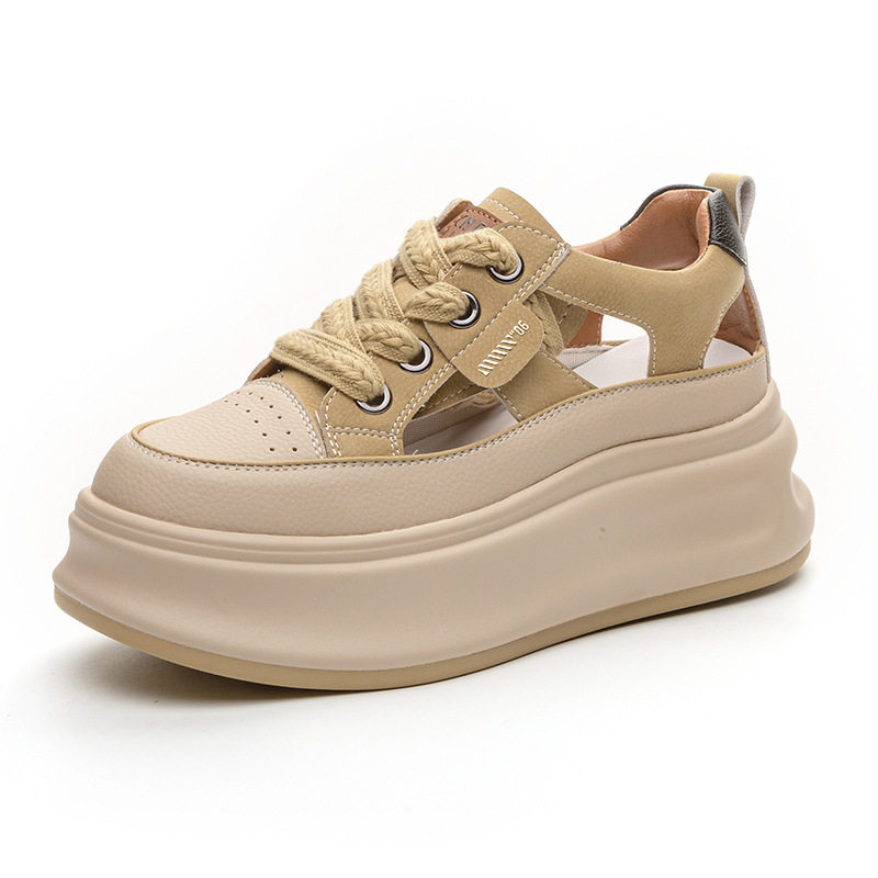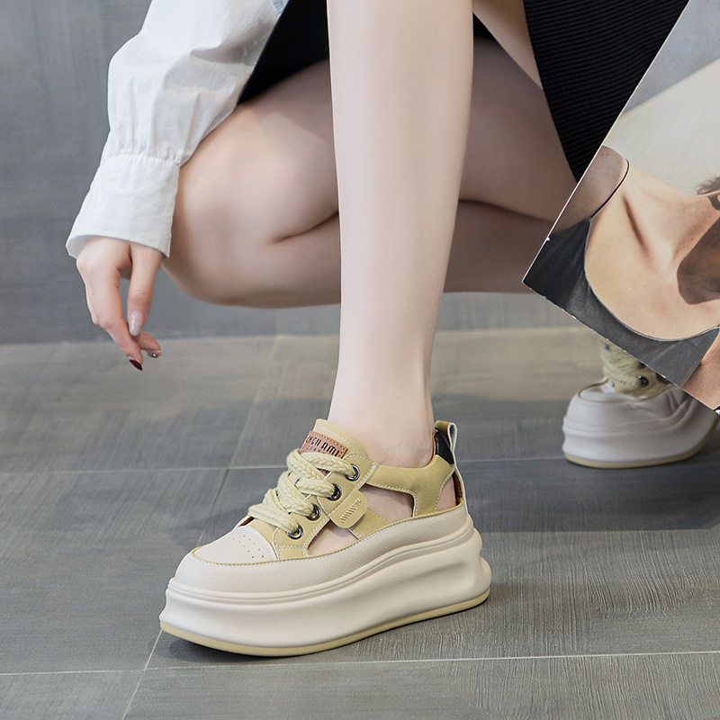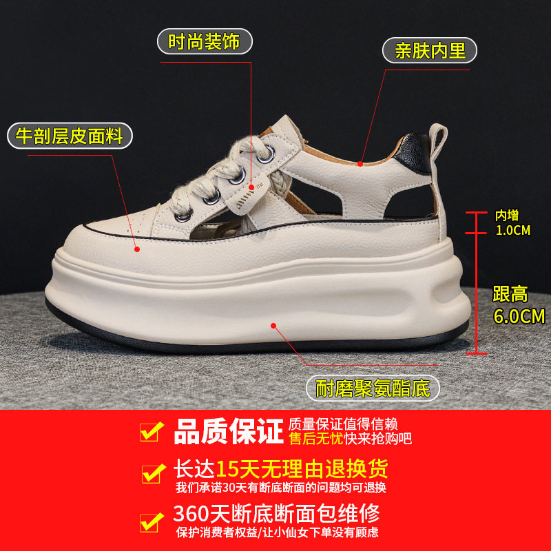 2026春夏新款真皮女鞋松糕厚底时尚内增高运动休闲鞋学生镂空凉鞋