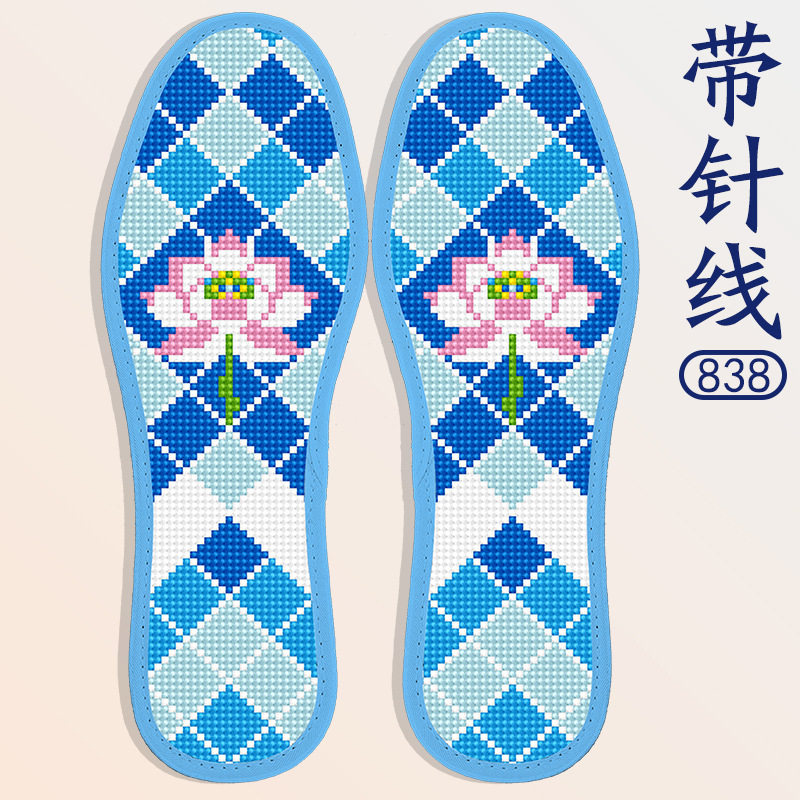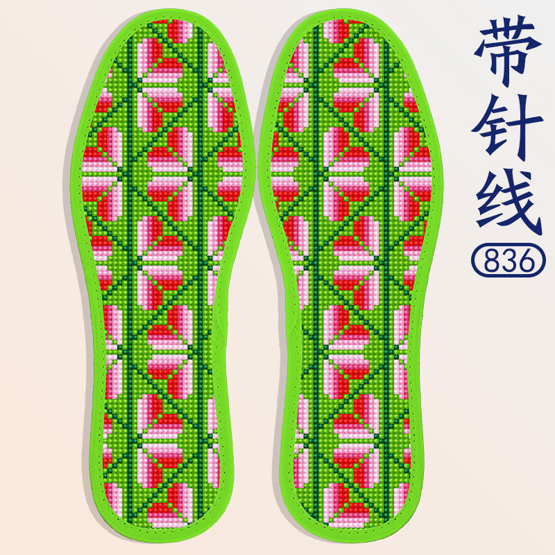 蒙娜丝十字绣鞋垫新款简单好绣几何格子系列带针线单股刺绣半成品