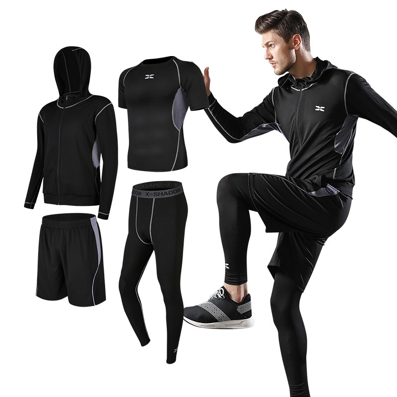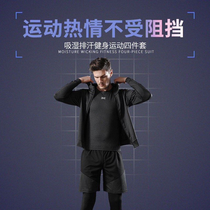 健身房运动套装男春秋季2020新款跑步运动训练服紧身裤子宽松速干