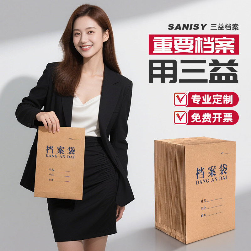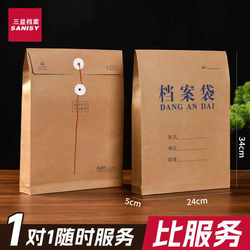 100个蓝字红字A4档案袋牛皮纸文件袋人事加厚加宽木浆纸加大文件袋卷宗封皮纸质合同大容量定制订做印刷logo