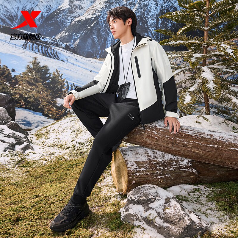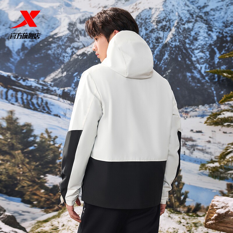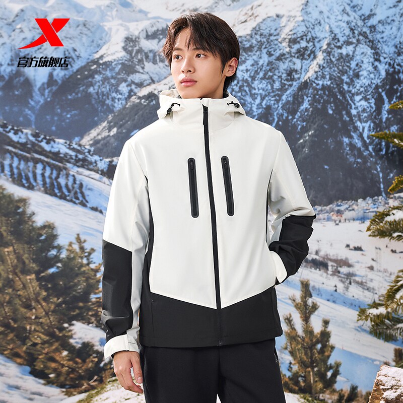 特步户外三合一防水冲锋衣男款白色春秋加绒夹克男官方旗舰店正品