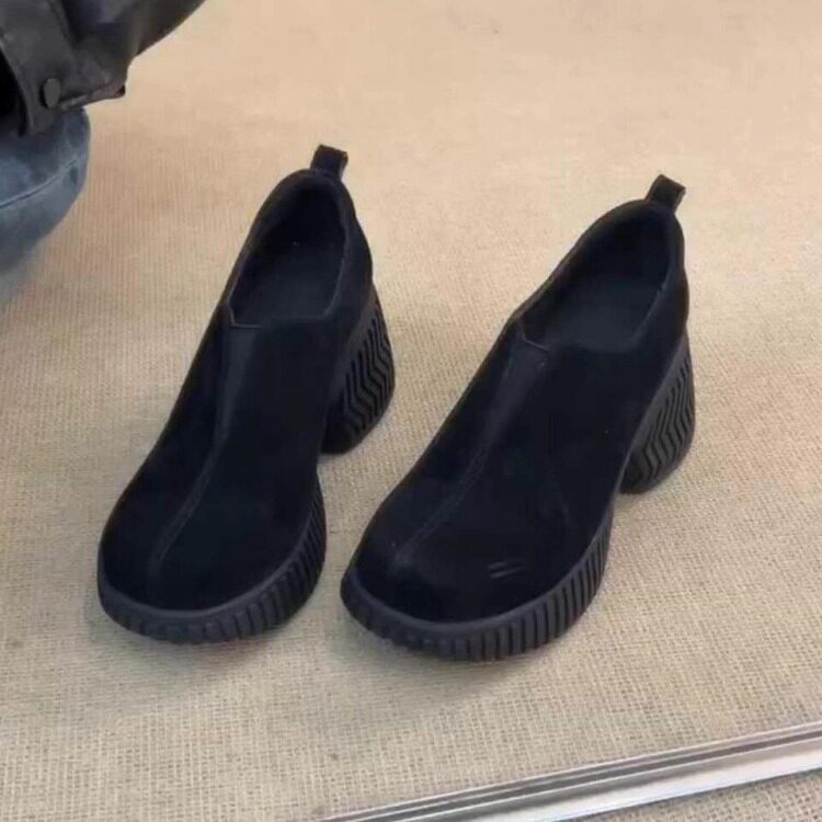 真皮厚底小个子增高7.5CM复古乐福鞋圆头深口高跟鞋一脚蹬单鞋女