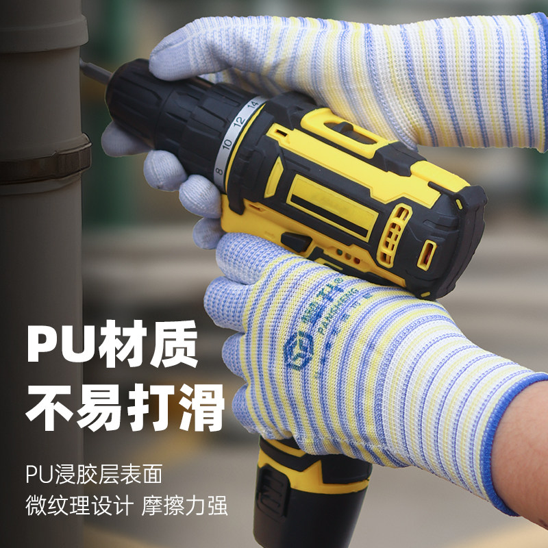 劳保手套耐磨防滑薄款带胶男女工作胶皮透气乳胶干活轻便橡胶手套