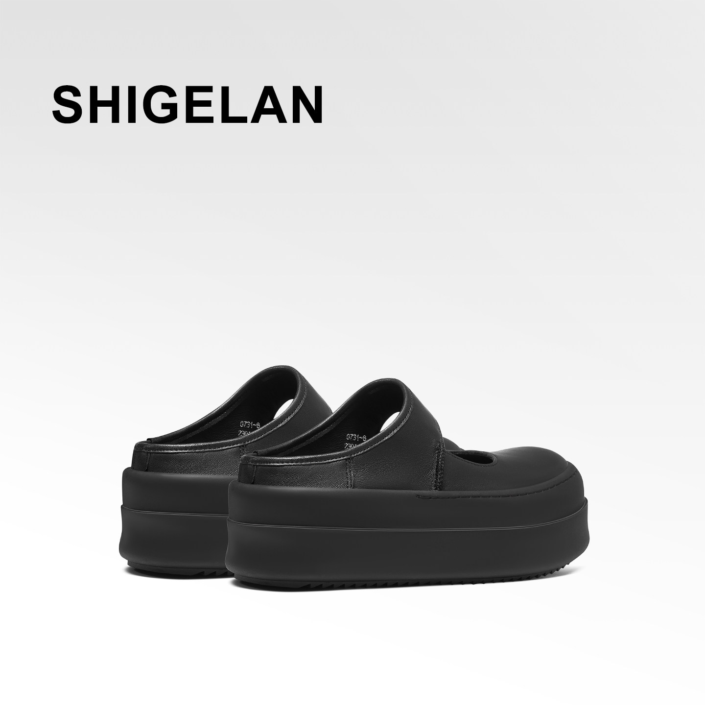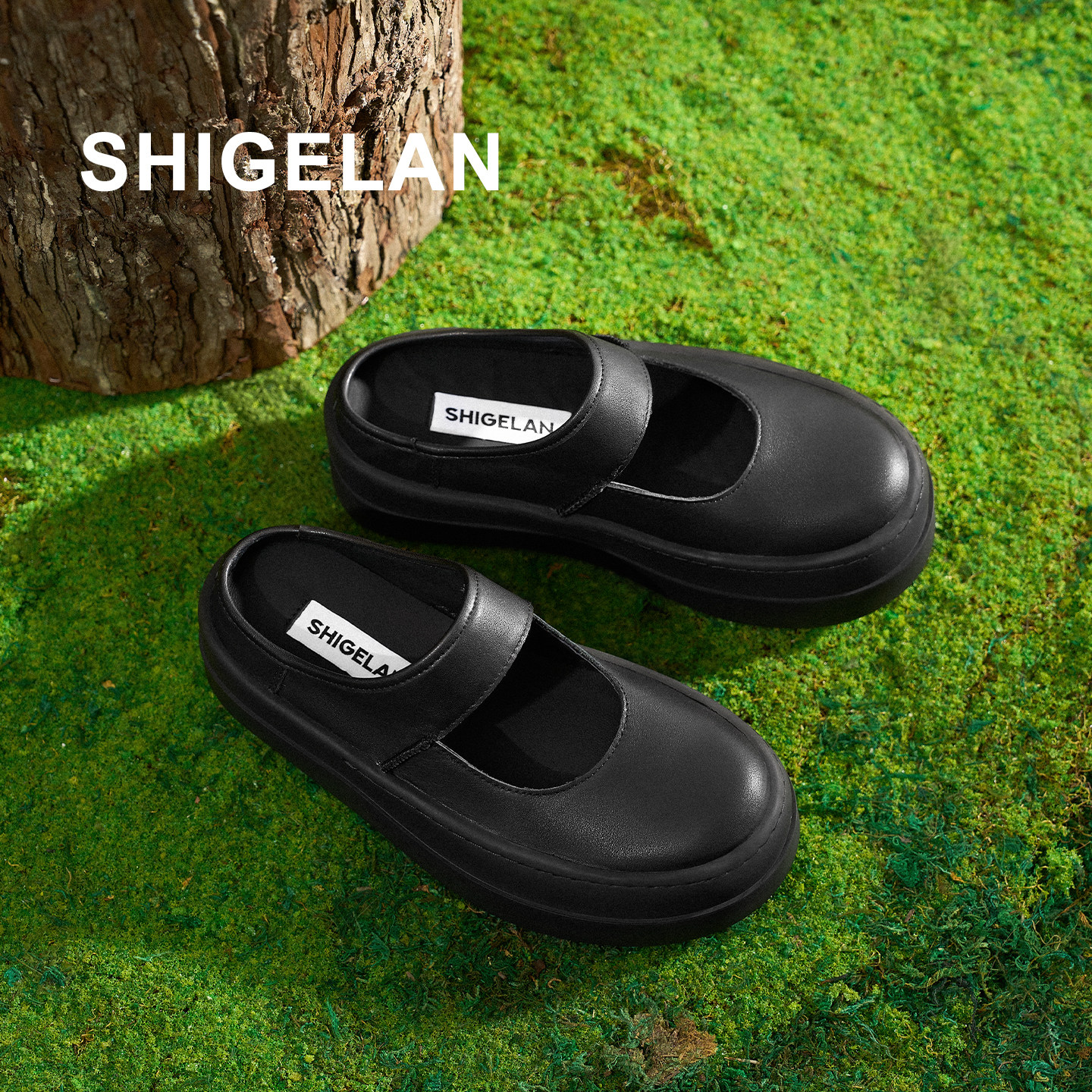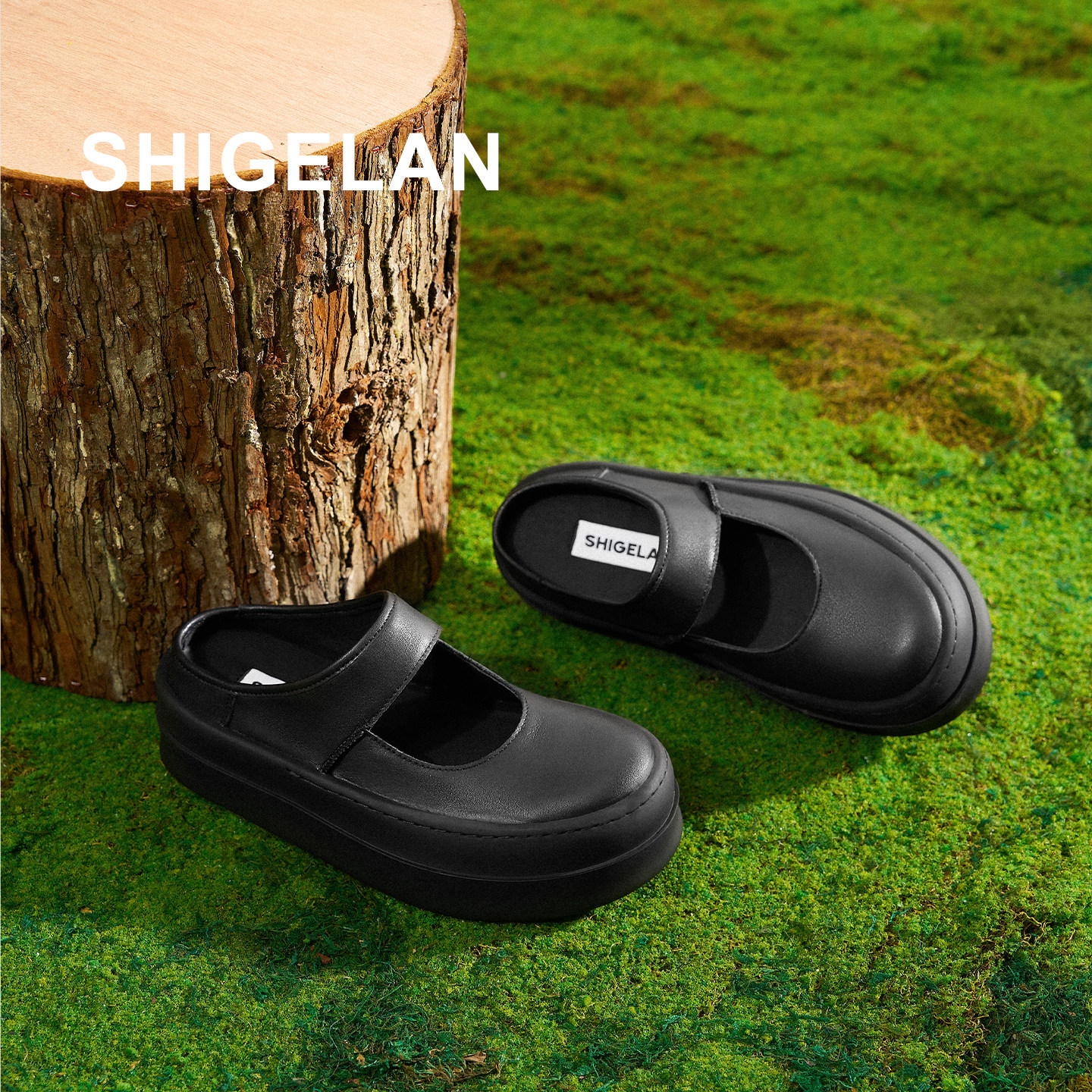 诗歌兰2026新款复古真皮厚底玛丽珍包头拖便捷一脚蹬女鞋半拖凉鞋