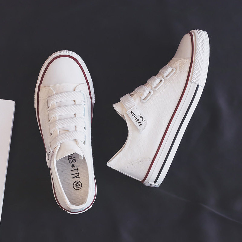 秋季一脚蹬小白鞋女款超火经典粘扣魔术贴白色帆布鞋布鞋球鞋板鞋
