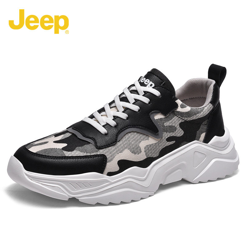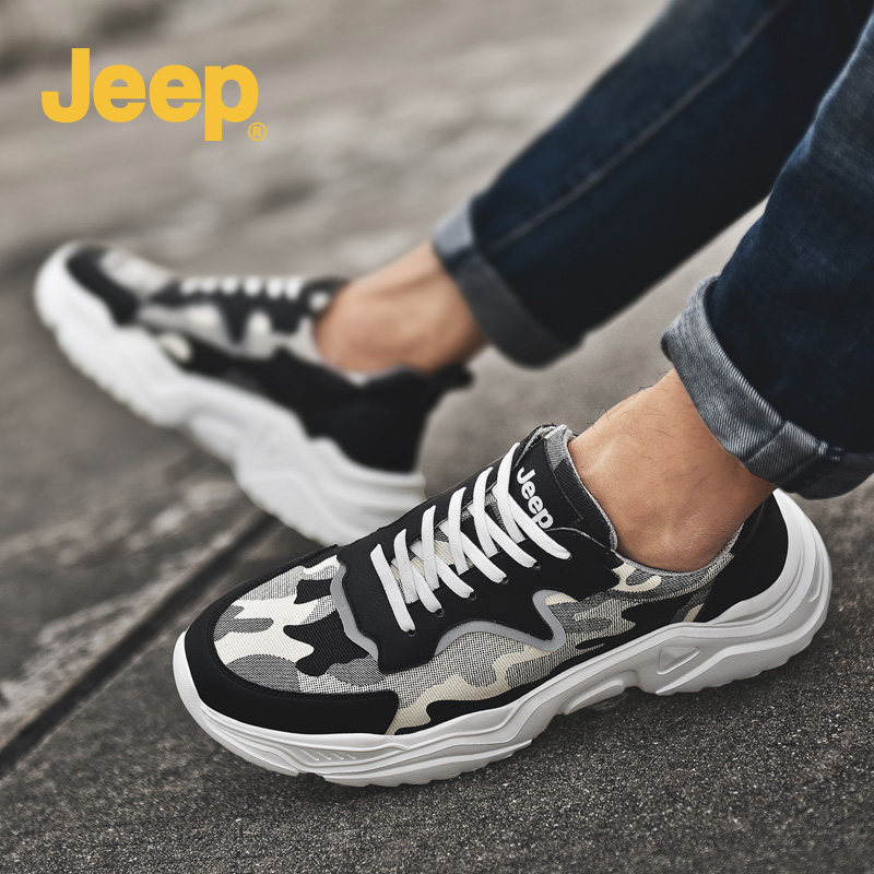 jeep男鞋夏季透气老爹鞋男厚底潮鞋百搭运动鞋软底男士休闲鞋迷彩