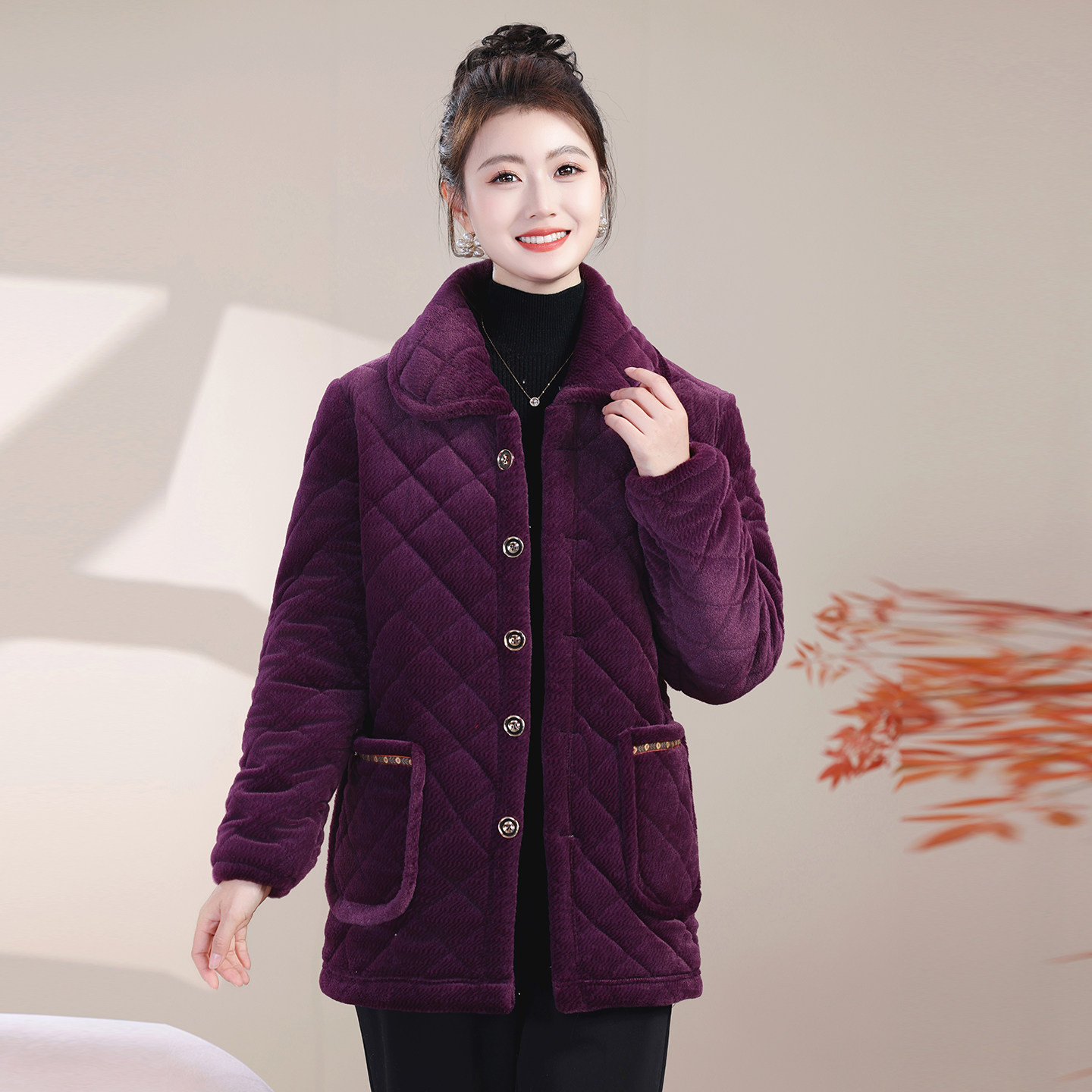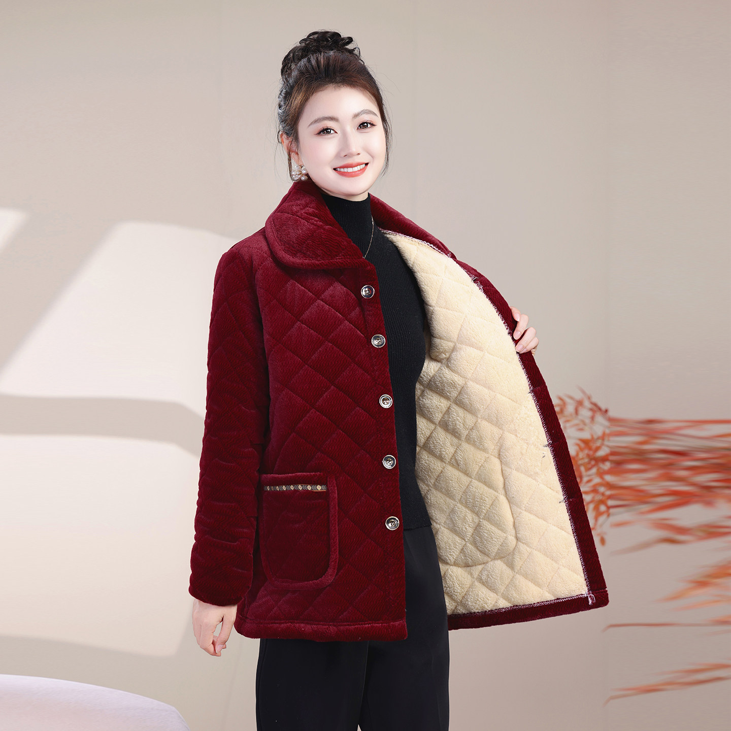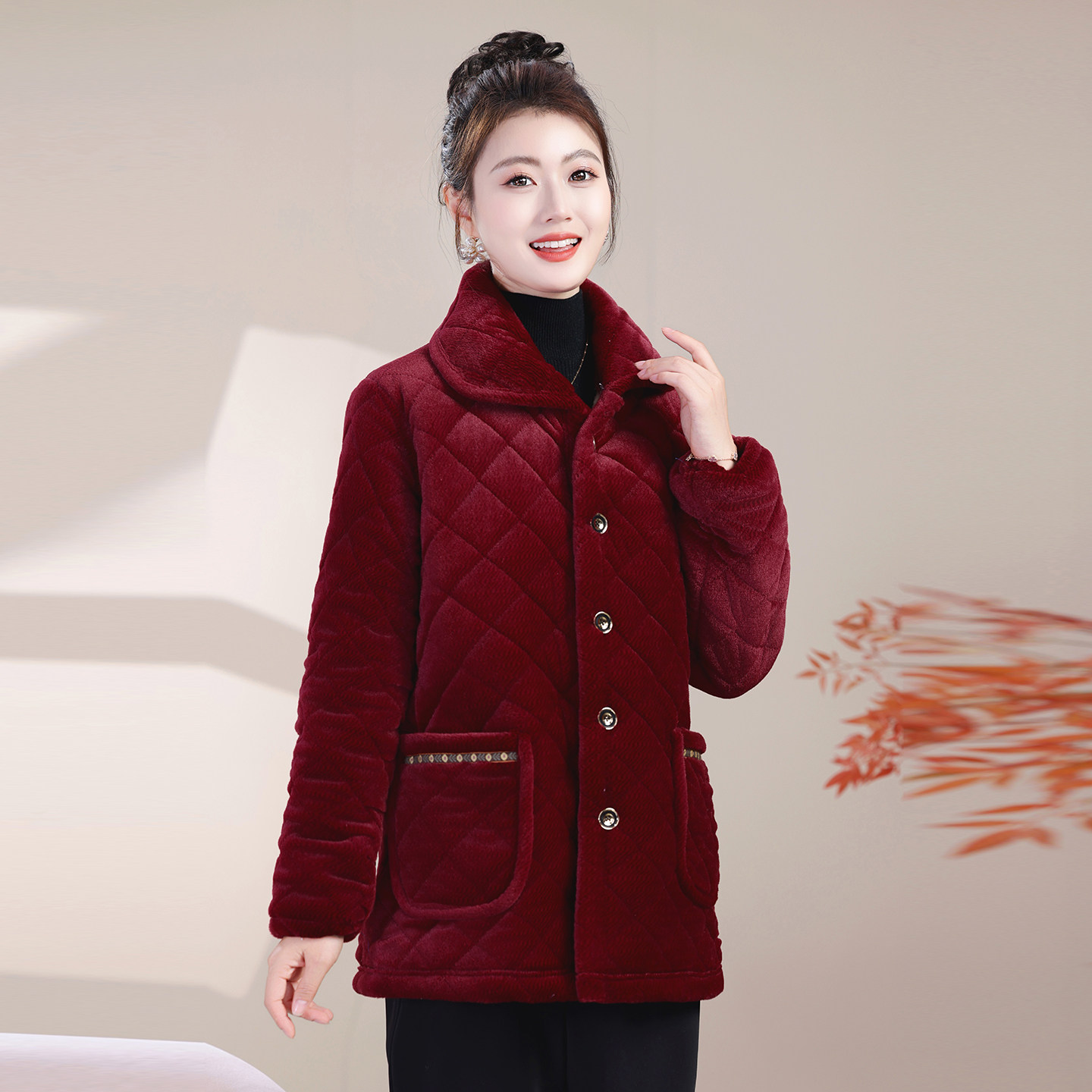 冬季新款罩衣女士加厚加绒外套棉衣中老年宽松女装棉袄保暖棉服