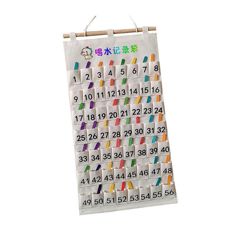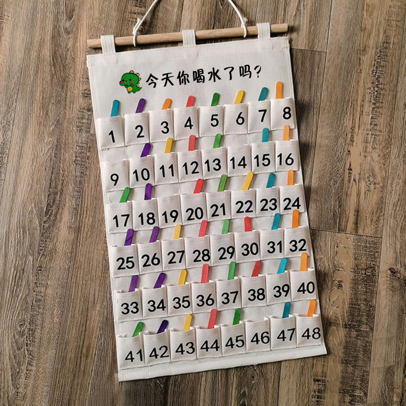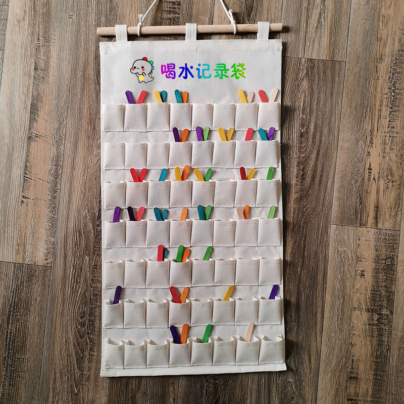 喝水记录袋帆布可水洗健康记录袋准确记录喝水次数棉麻墙挂式收纳