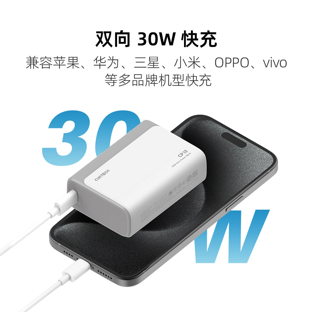 【3C认证】CUKTECH酷态科电能块30W口袋版电芯10000毫安时移动电源PD快充小巧充电宝适用于iPhone17Pro MAX