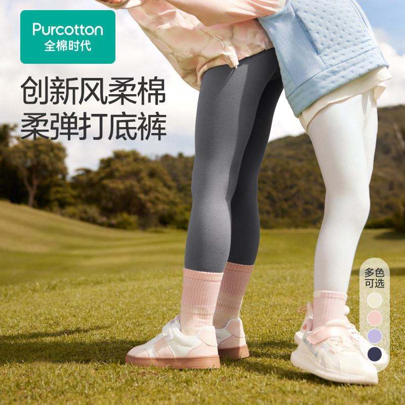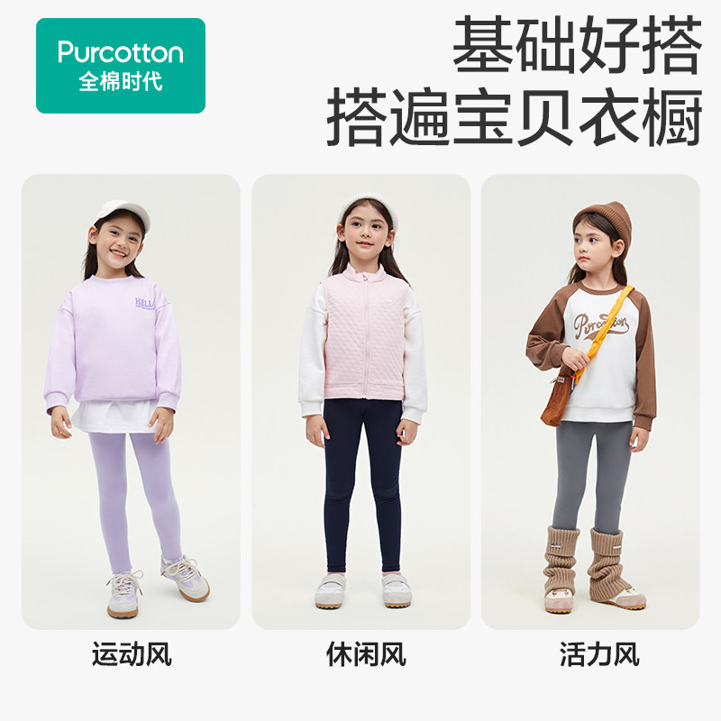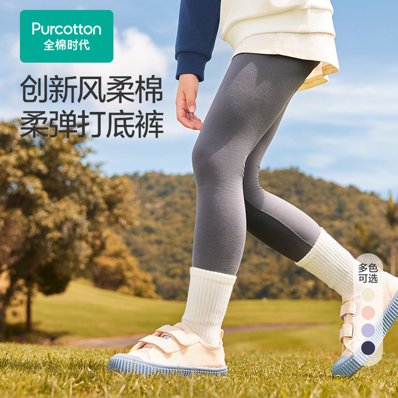 全棉时代女童打底裤针织长裤女孩休闲裤子儿童百搭纯棉黑色运动裤