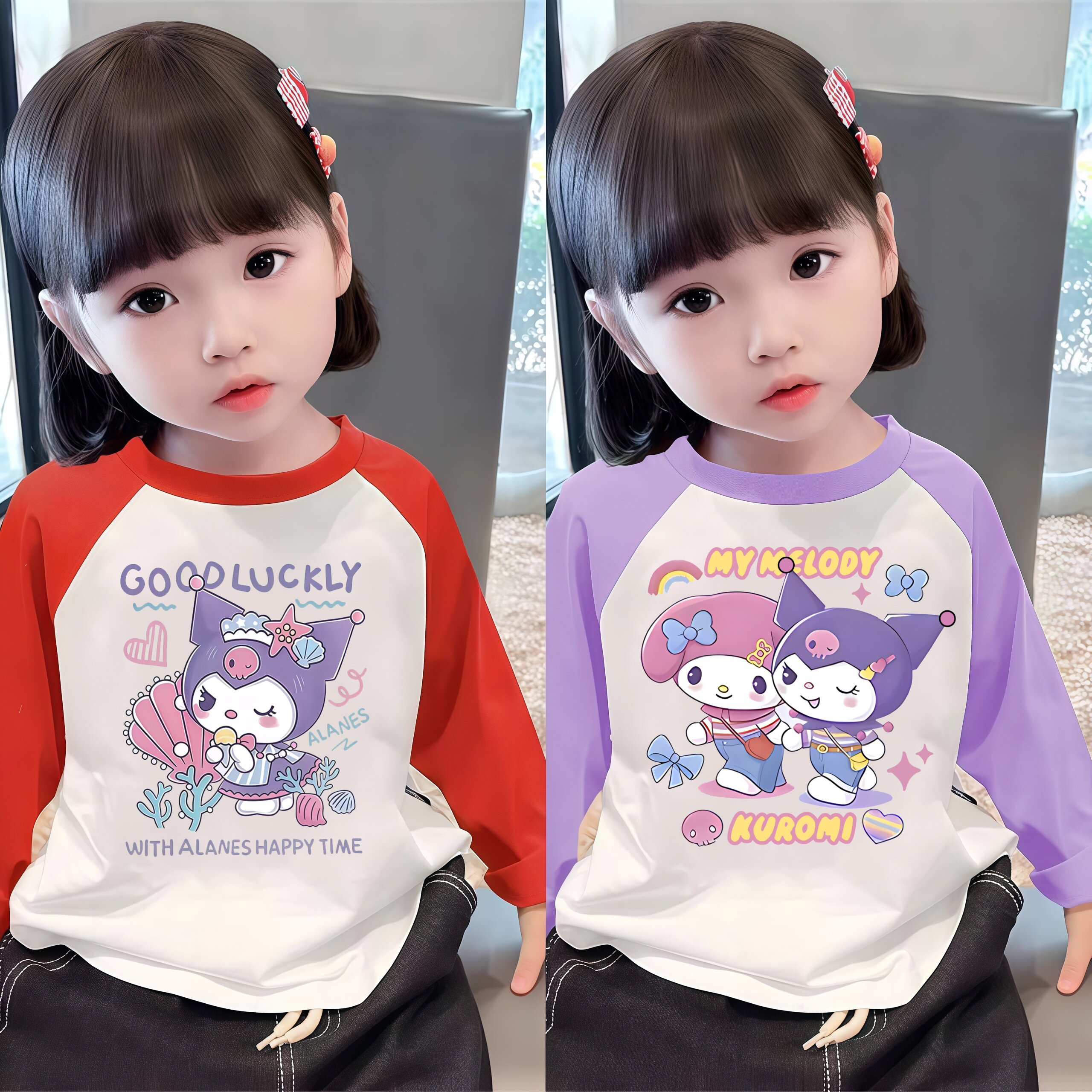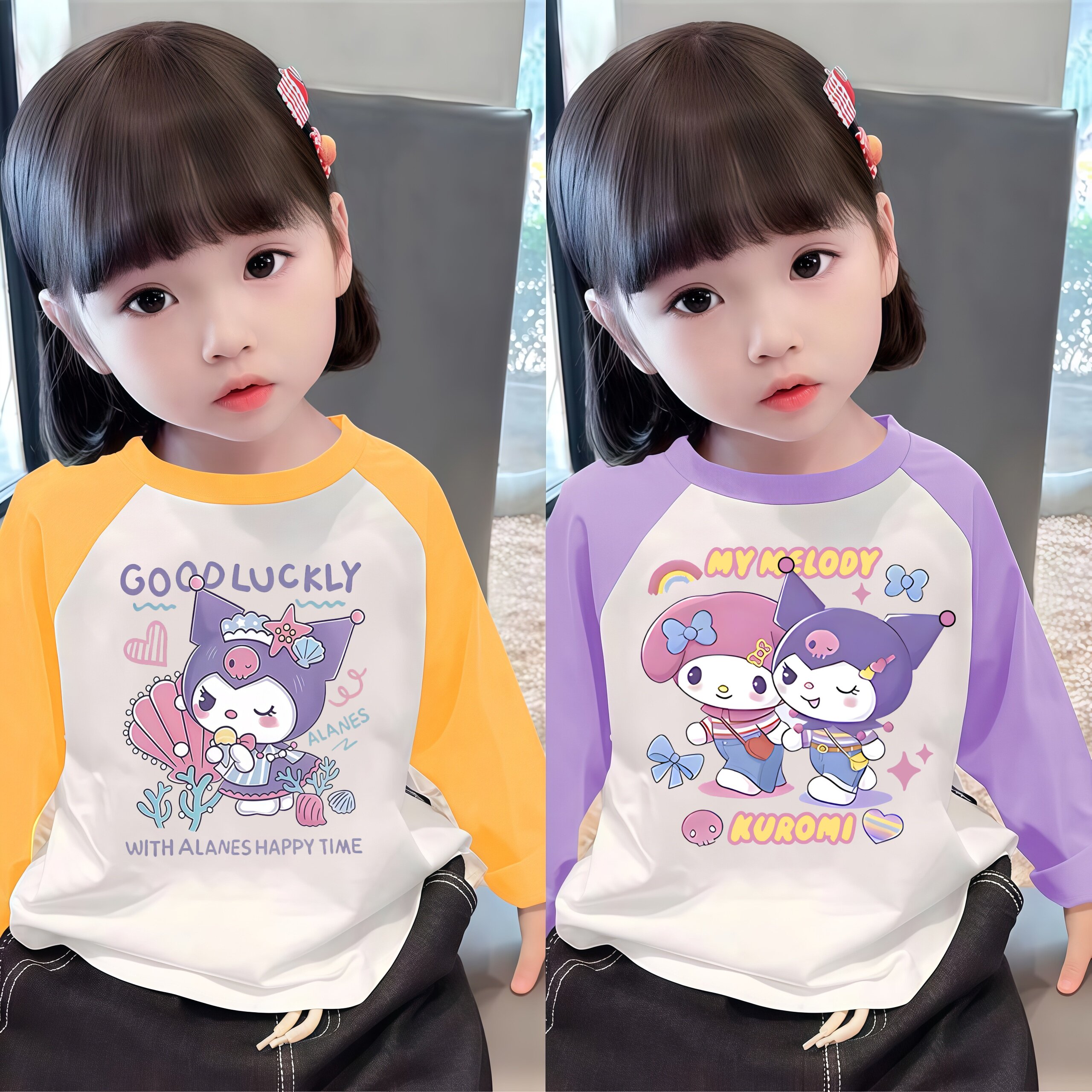 女童纯棉长袖t恤库洛米春秋季新款卡通女孩薄款中小童打底衫上衣