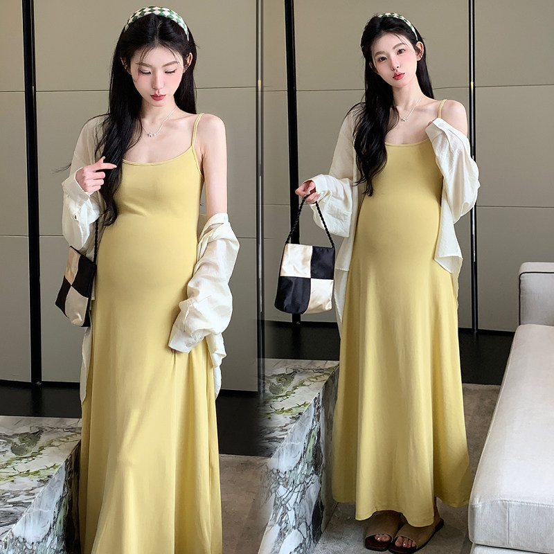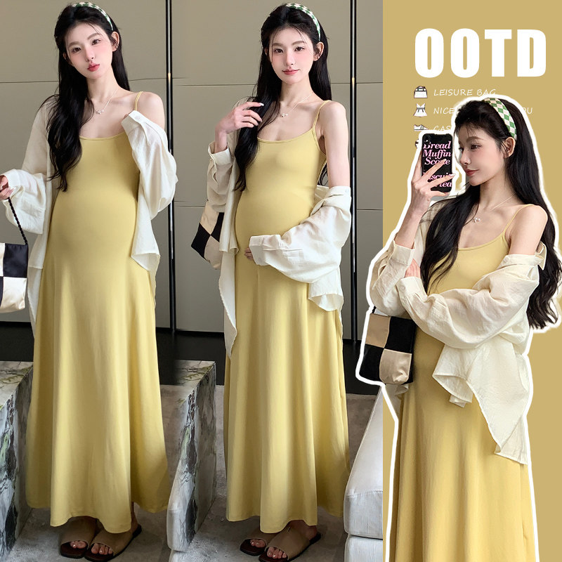 孕妇装夏套装2026新款夏季时尚孕妈高级感吊带连衣裙开衫两件套女