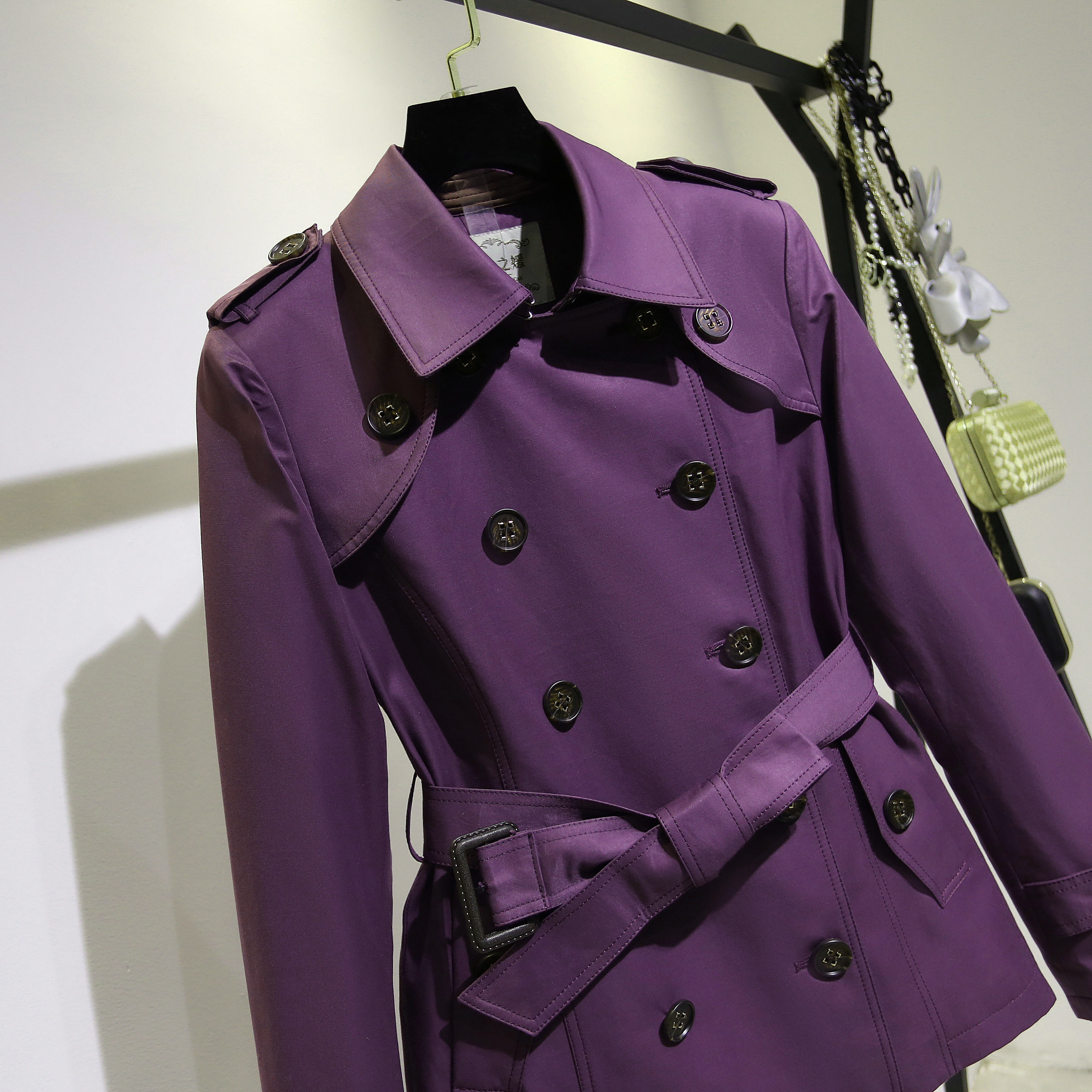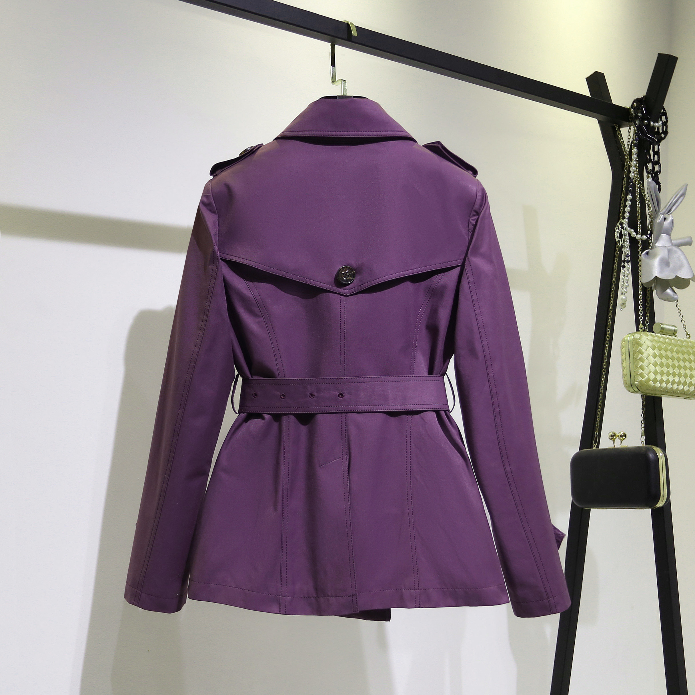 紫色短款风衣外套女2026春秋新款小个子早春流行品牌女款春季女士