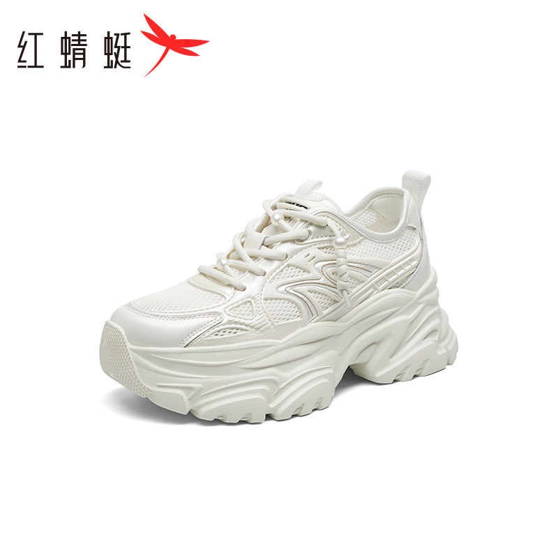 红蜻蜓老爹鞋女小个子春秋女鞋厚底增高休闲运动鞋网面透气跑步鞋