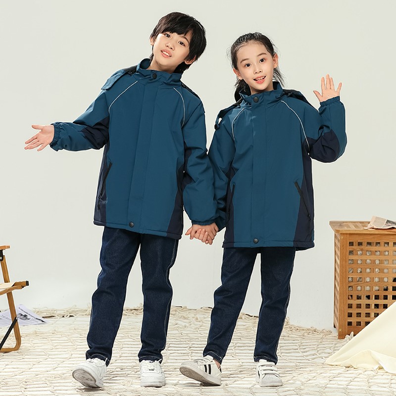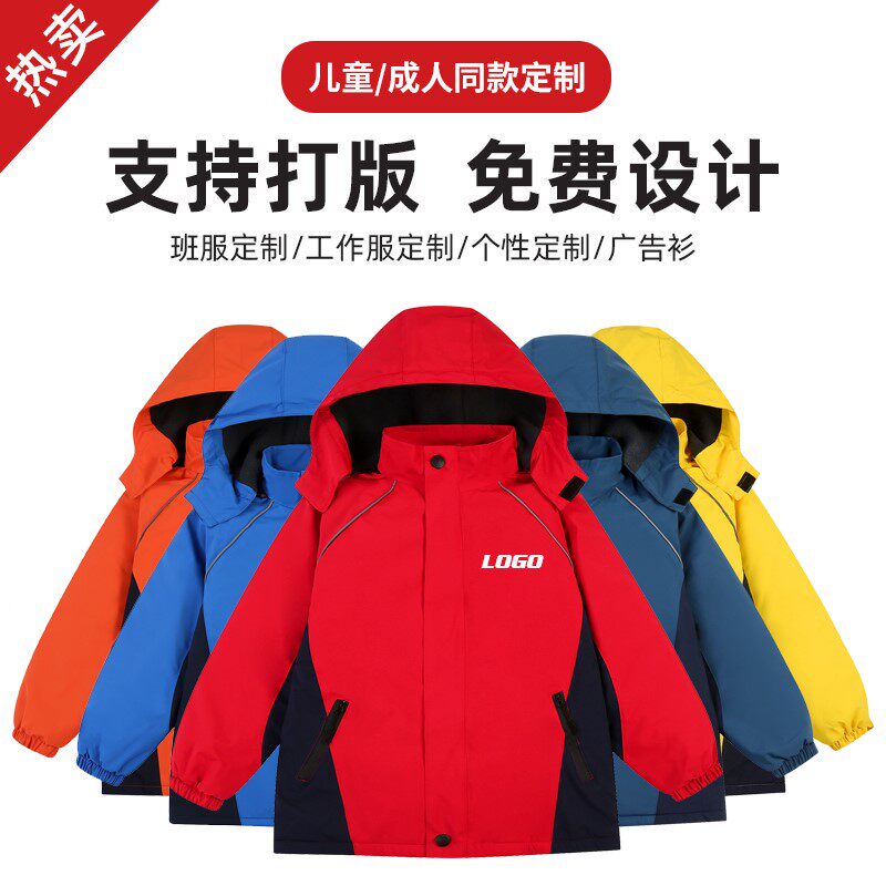 儿童冲锋衣定制校服班服印字logo秋冬加厚加绒防水亲子装外套刺绣