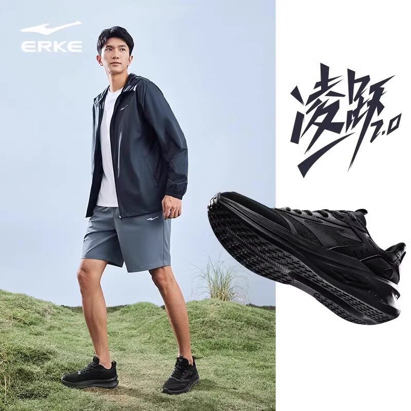 跃空鸿星尔克男鞋2026夏季新款黑色中老年爸爸网面透气跑鞋运动鞋