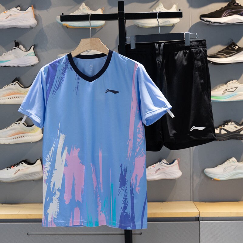 李宁羽毛球服比赛套装2025新款速干凉爽训练男女运动短袖AATV041