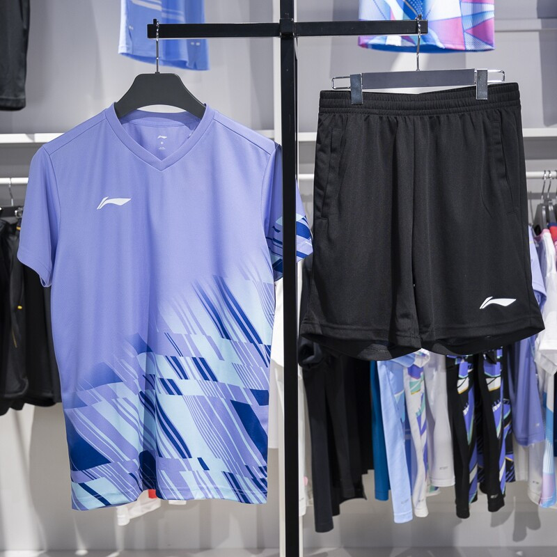 李宁羽毛球服男女同款比赛套装新款速干凉爽短袖短裤AATU053