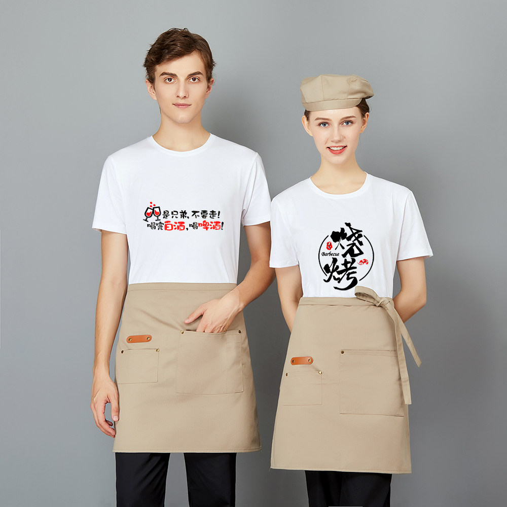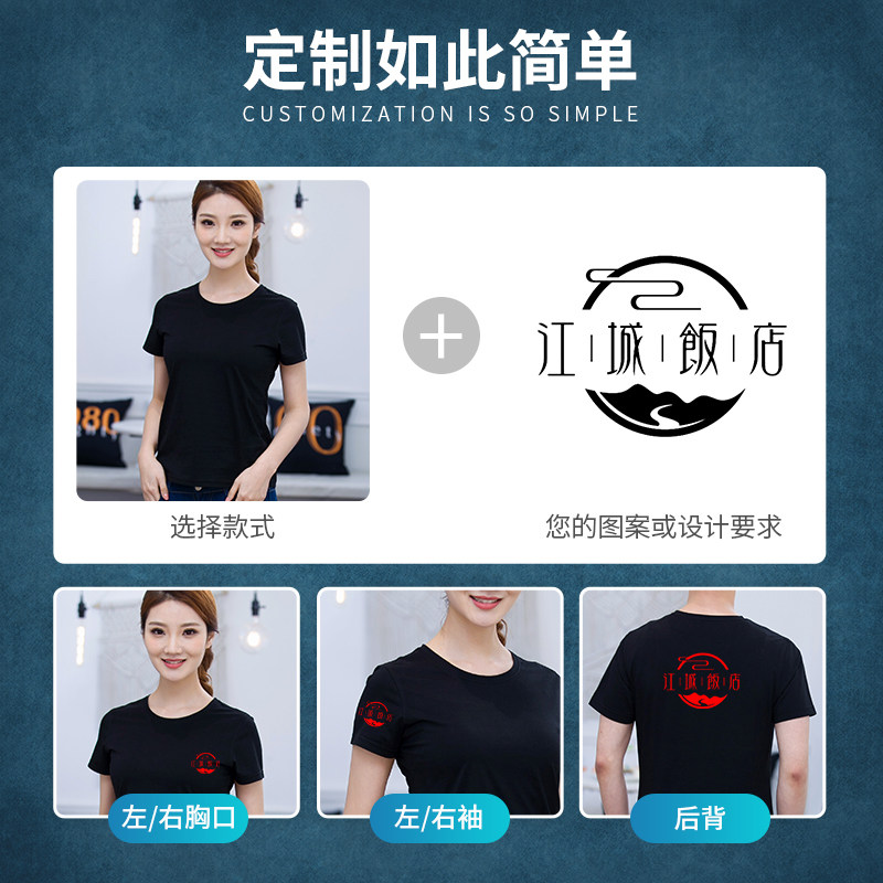 纯棉服务员餐饮工作服短袖女男夏季奶茶店火锅店圆领T恤长袖定制