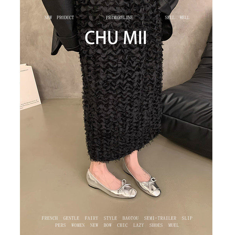 羊皮版~晚风气质单鞋女方头内增高平底玛丽珍鞋银色软底粗跟瓢鞋