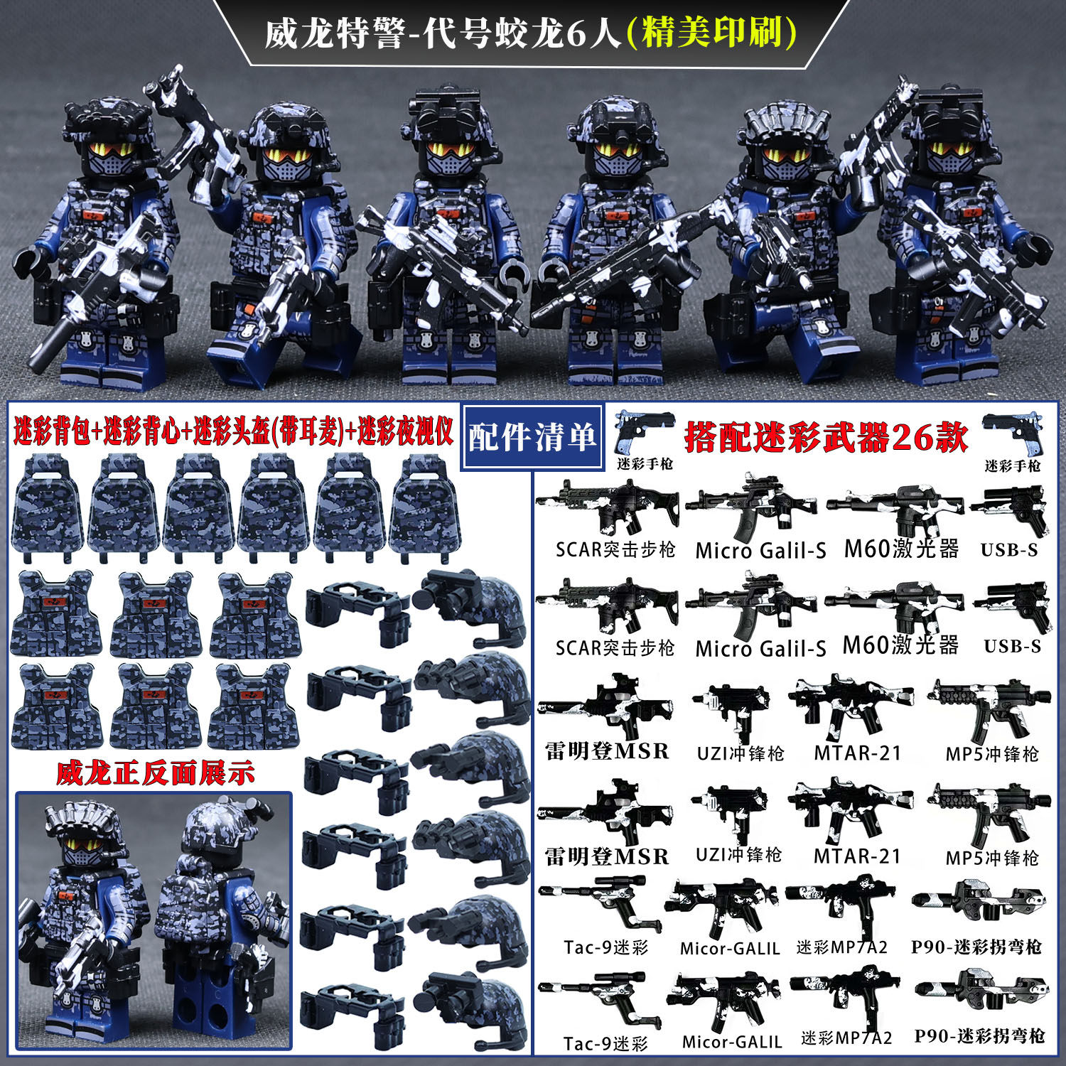 威龙特种兵军事人仔腰带夜视仪儿童益智拼装积木玩具兼容乐高