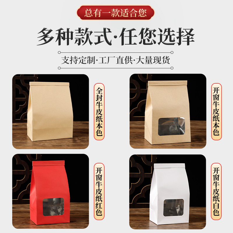 牛皮纸茶叶包装袋大号开窗透明自封袋散茶铁丝密封袋茶叶包装袋