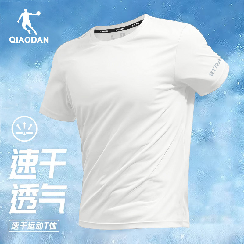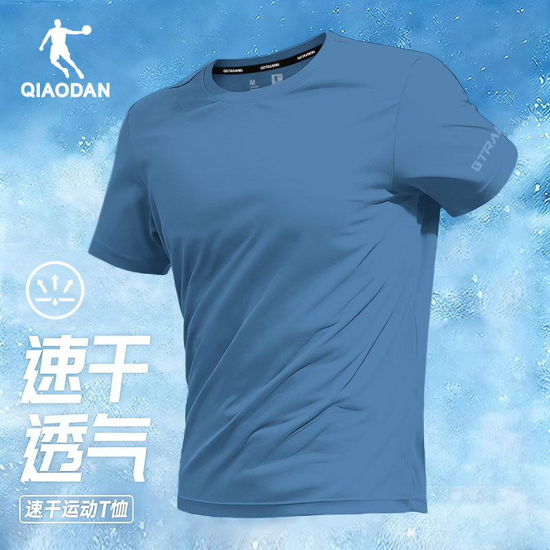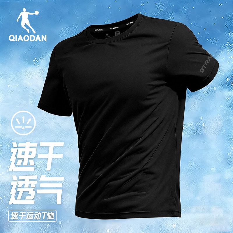 乔丹冰丝短袖男款夏季新款纯色健身T恤透气运动半袖上衣羽毛球服