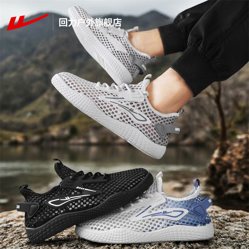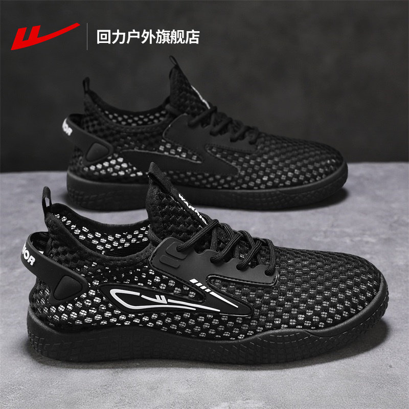 311线报网描述:回力旗舰店正品大网眼镂空男鞋网面透气网鞋