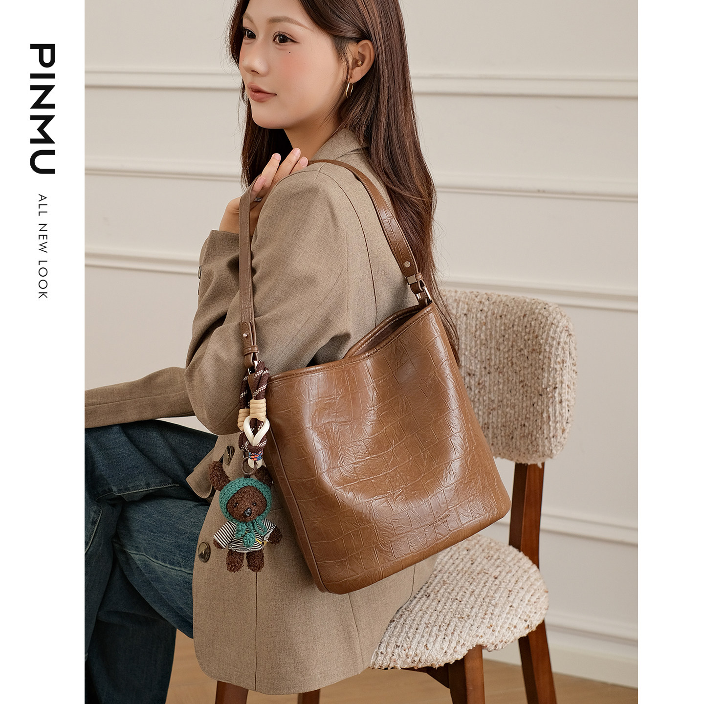 311线报网描述:高级感斜挎水桶包双肩带。可调节好更换