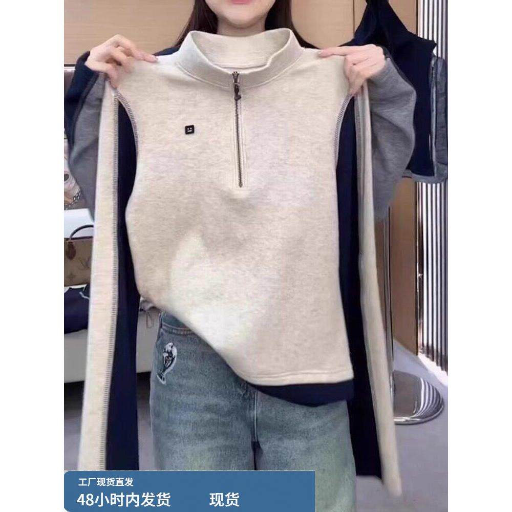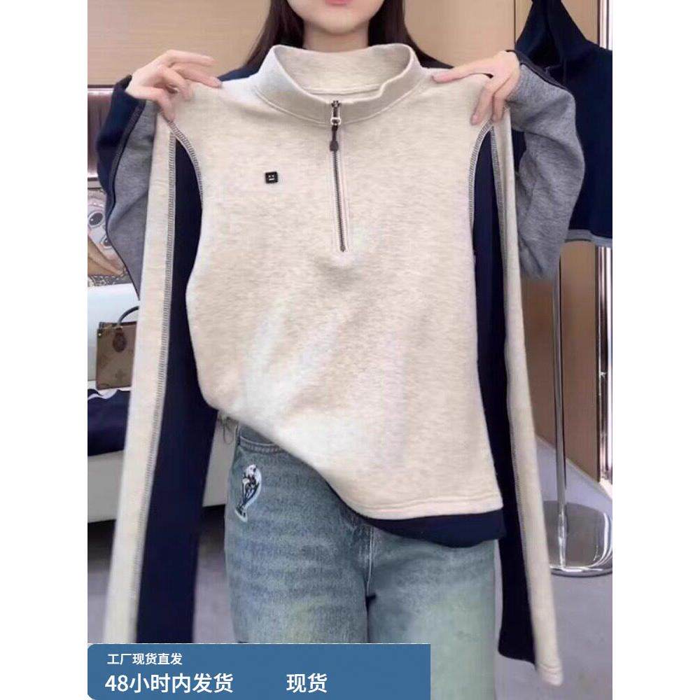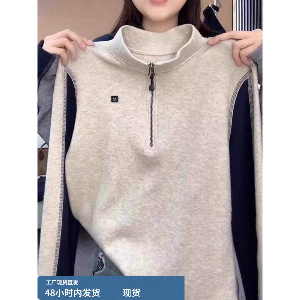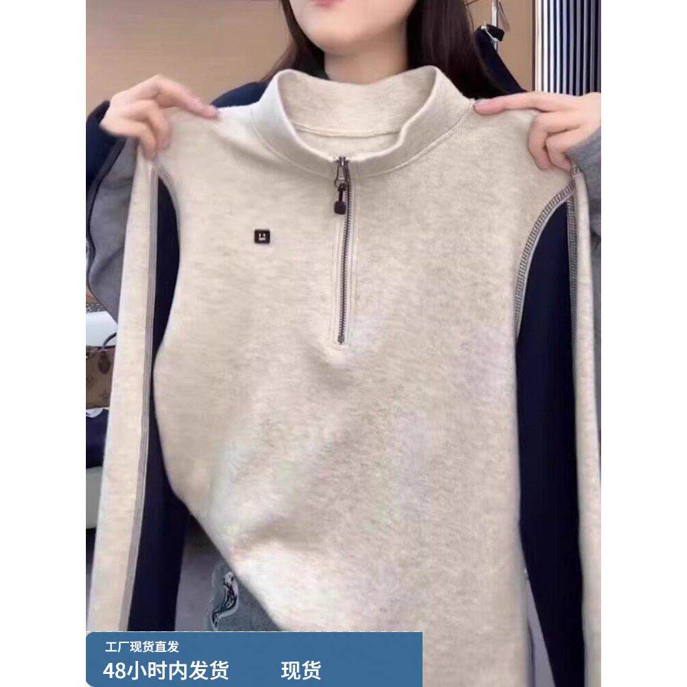 撞色假两件半拉链立领卫衣春款2026新款女装小个子内搭打底衫上衣