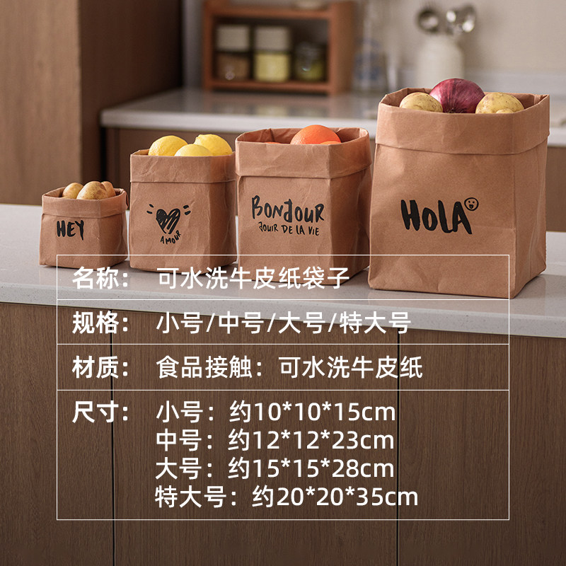 物鸣牛皮纸收纳袋可水洗ins风花盆冰箱厨房水果食品包装环保纸袋