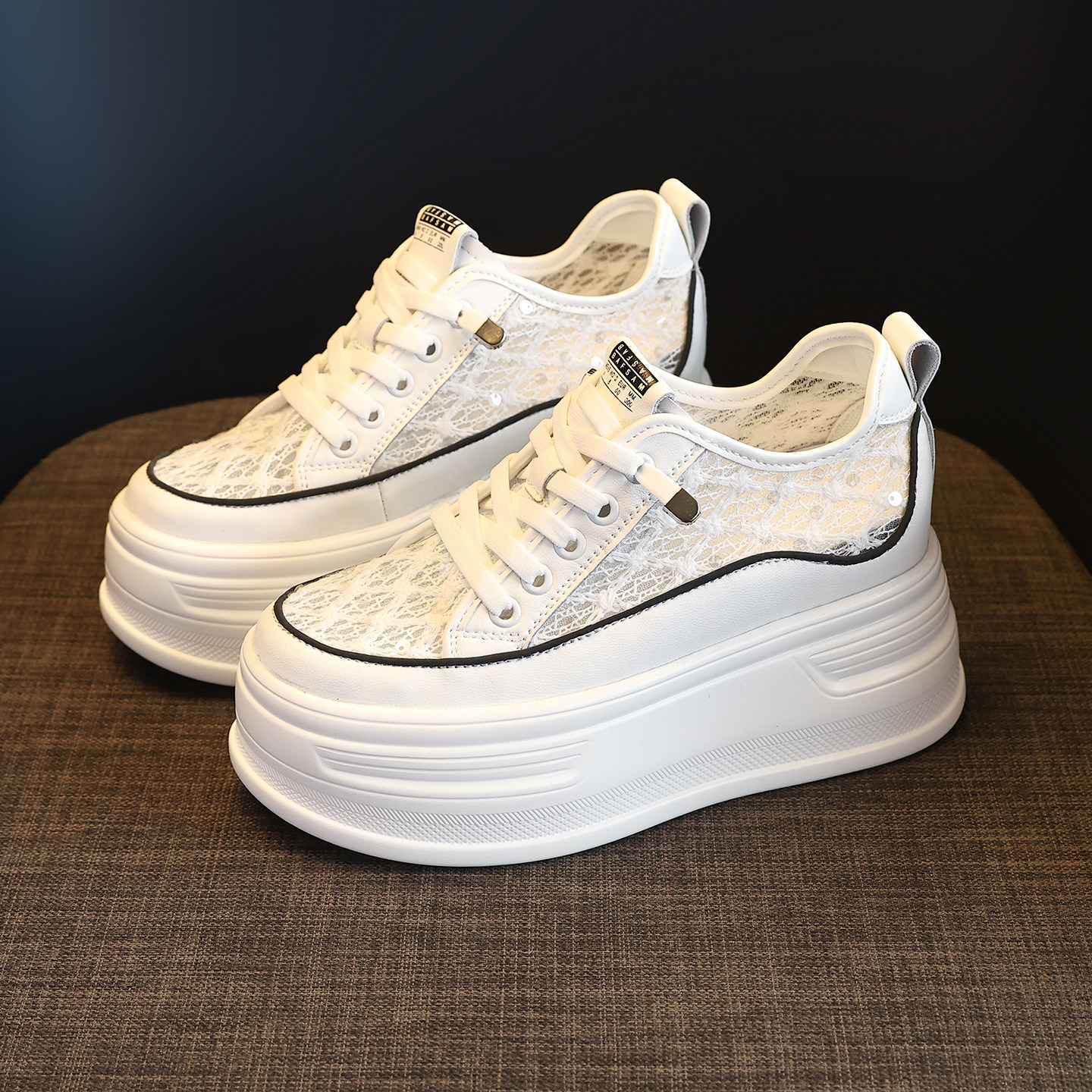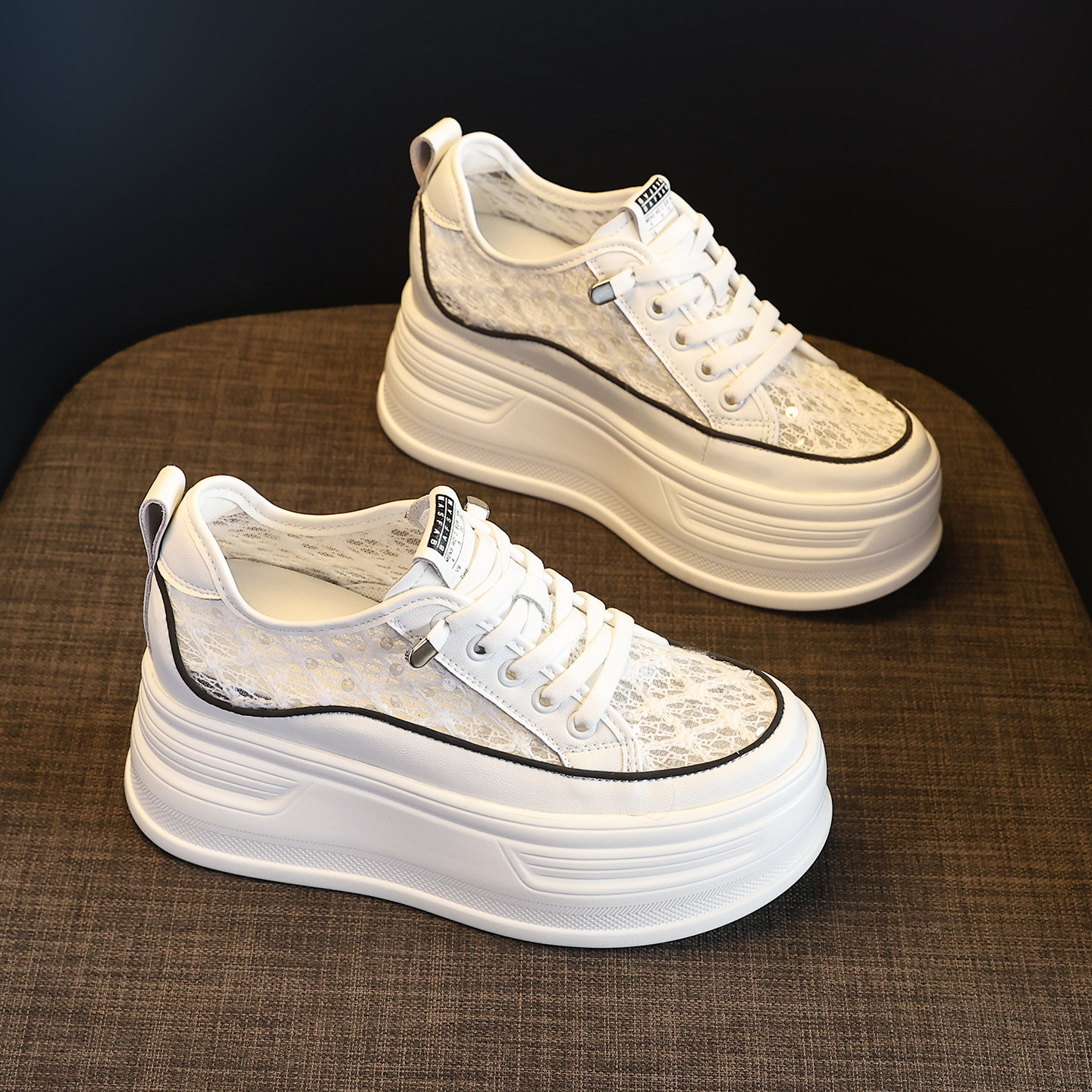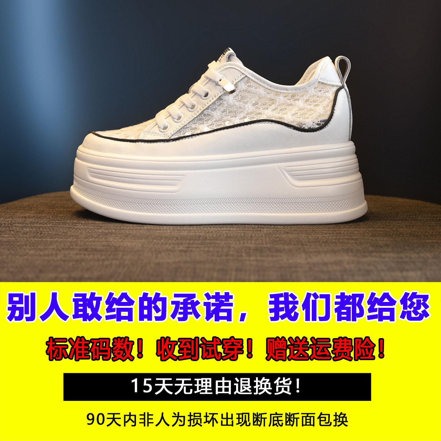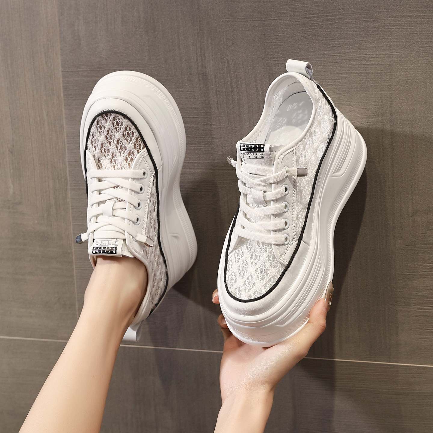 内增高小白鞋女夏季薄款2026新款网面透气厚底小个子一脚蹬懒人鞋