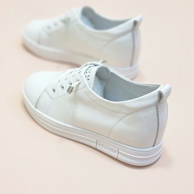 真皮内增高小白鞋女夏秋新款百搭坡跟一脚蹬懒人鞋软底运动休闲鞋