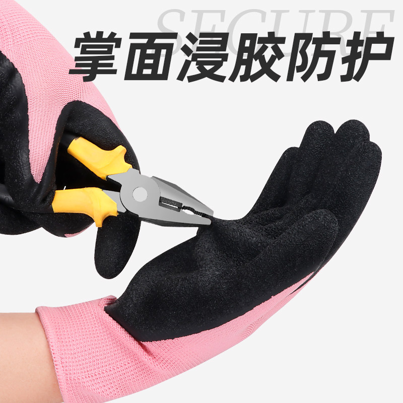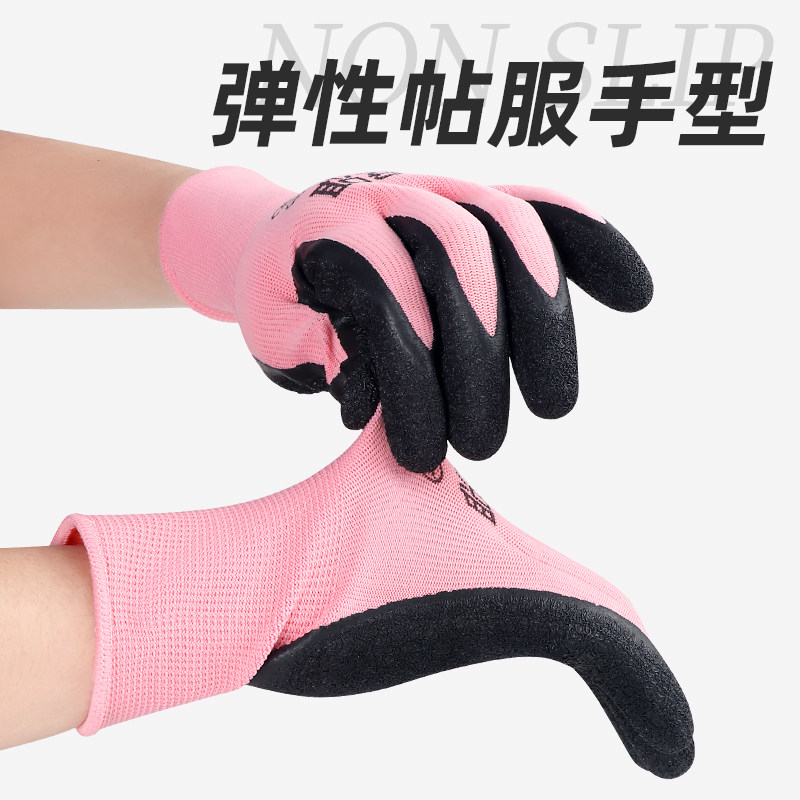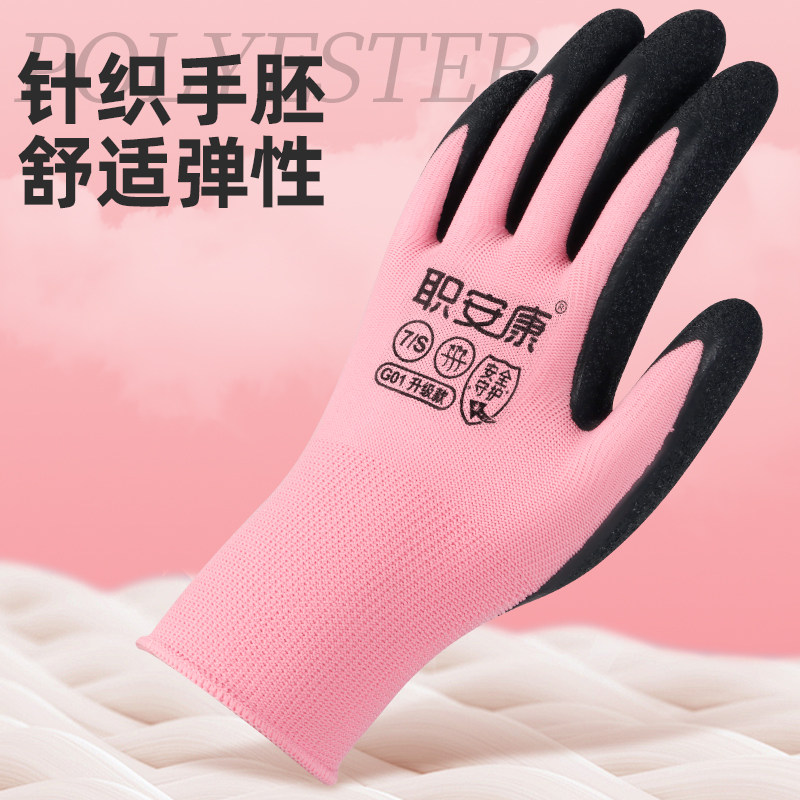 职安康劳保手套女干活薄款工作小号女士专用橡胶乳胶防水防滑耐磨