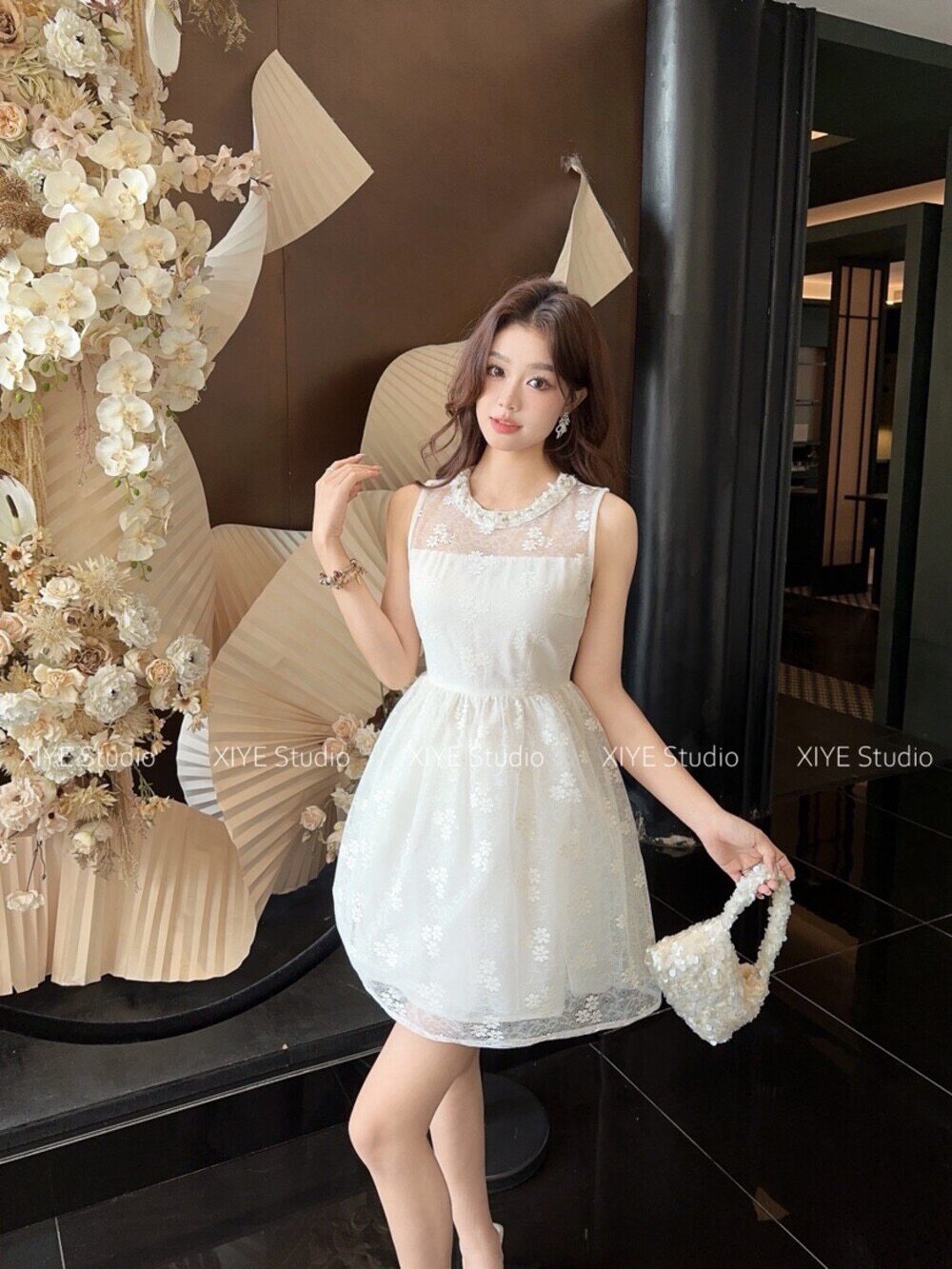 2026夏季新款时尚气质连衣裙女轻奢高级感钉珠黑色无袖背心短裙子