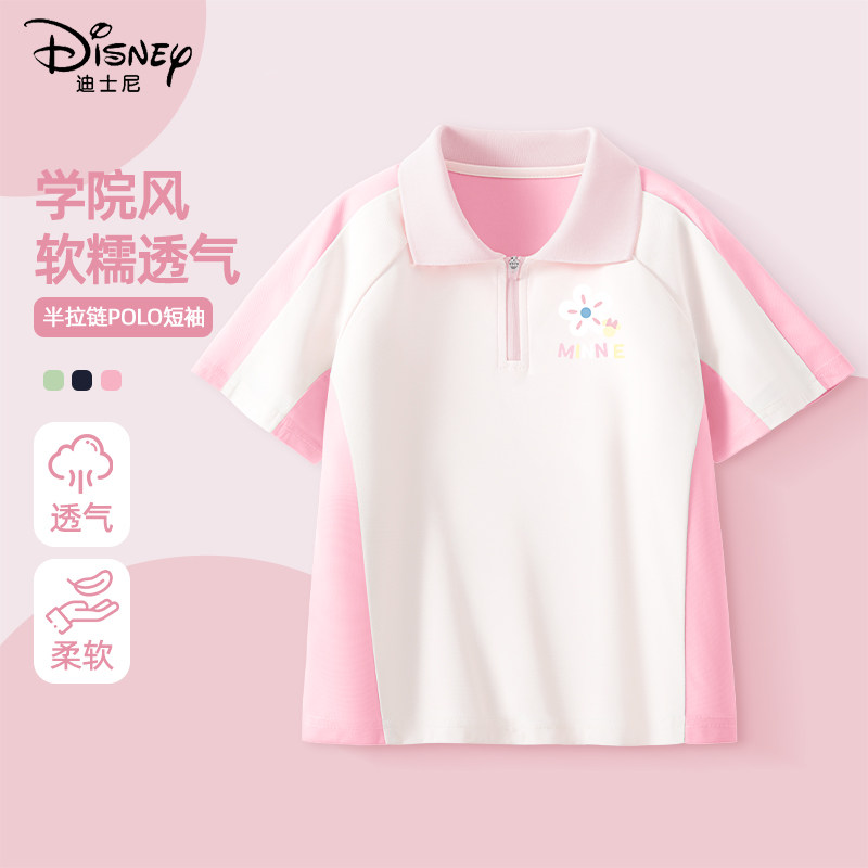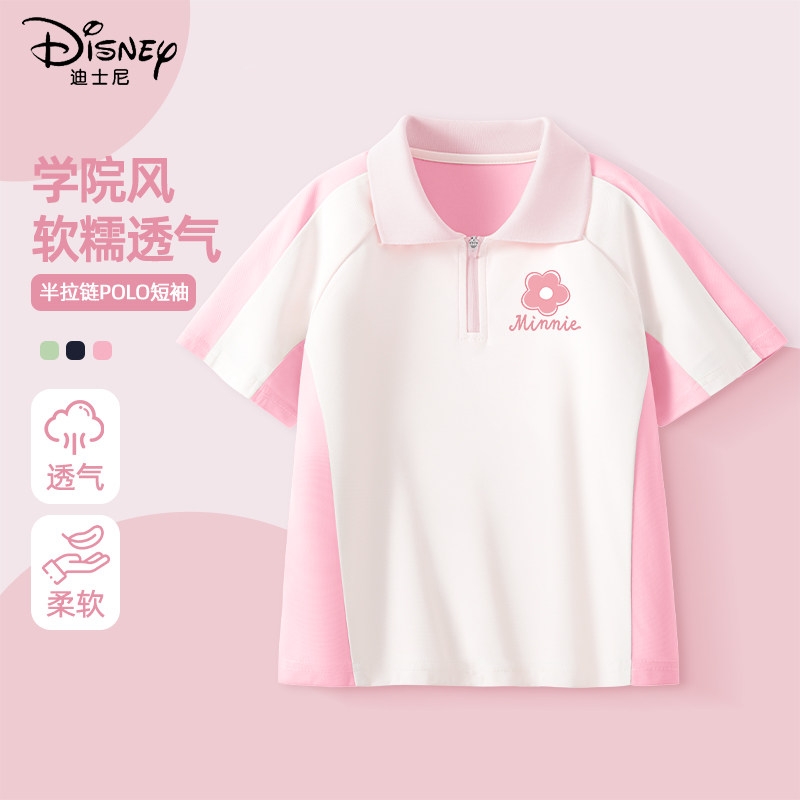 迪士尼女童短袖t恤2026新款夏季宽松运动夏装小女孩洋气儿童上衣