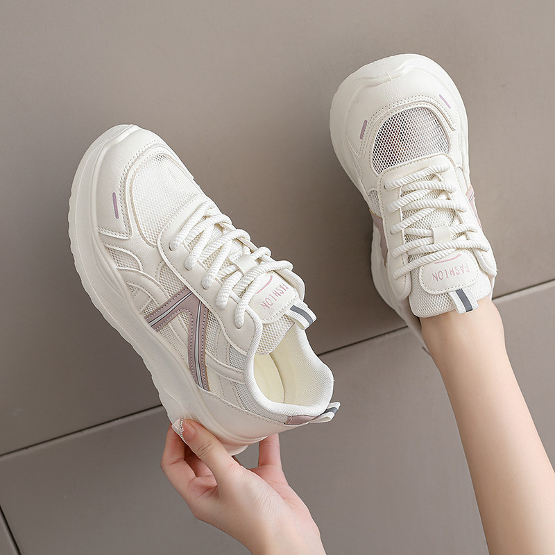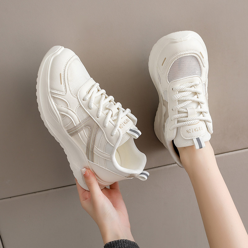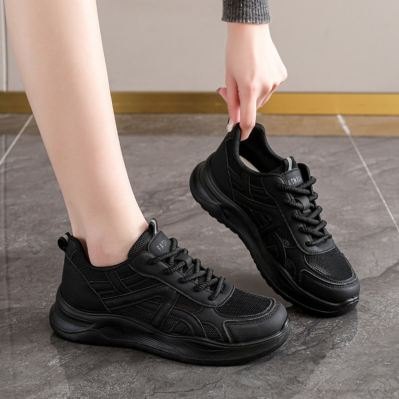 通勤风黑色厚底运动鞋女款夏季网面透气轻便不累脚防滑工作旅游鞋