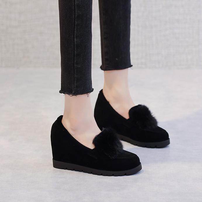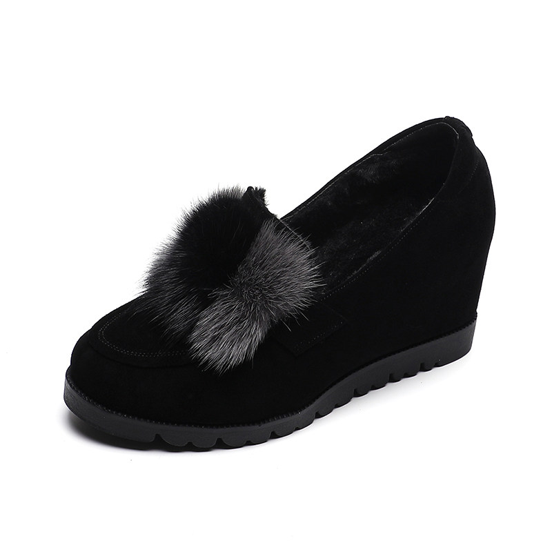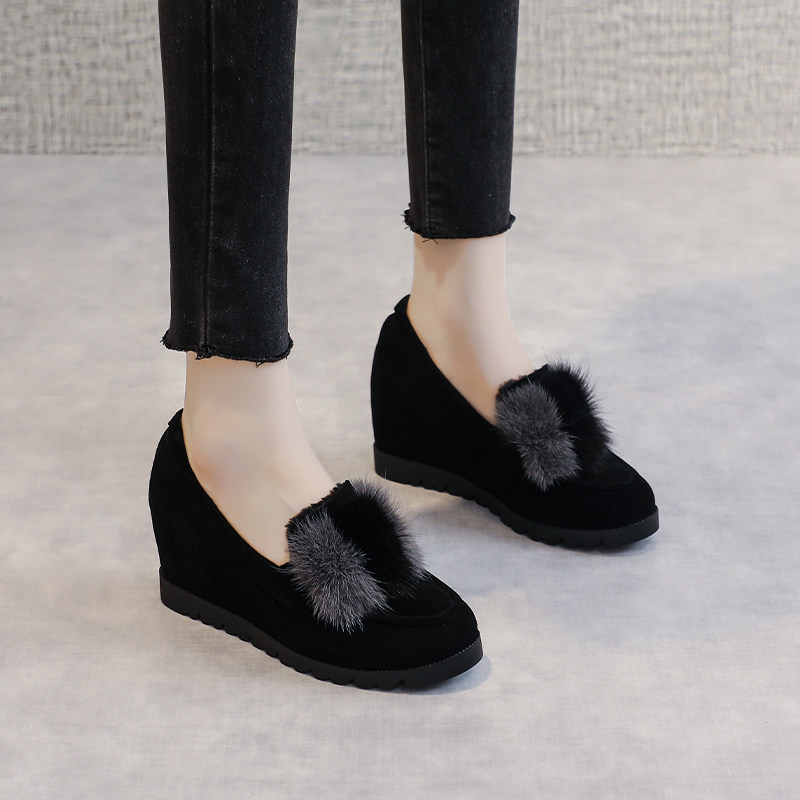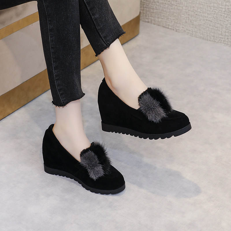 内增高毛毛鞋女冬外穿2025新款一脚蹬加绒厚底豆豆鞋真皮貂毛棉鞋