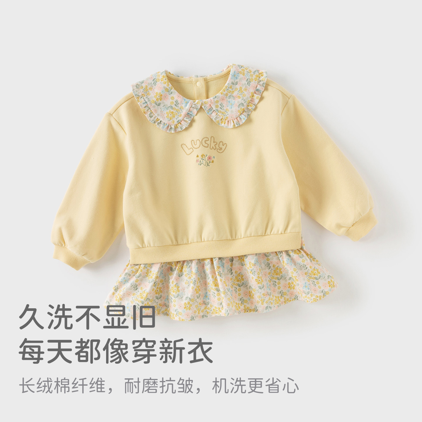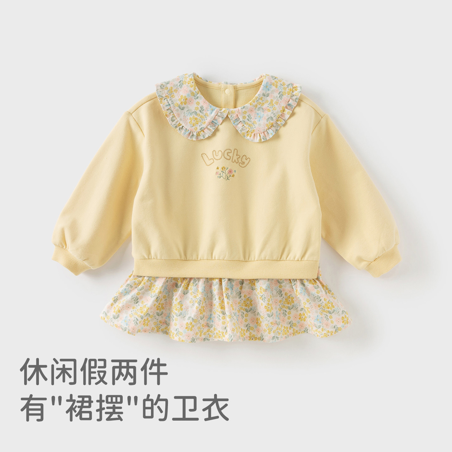 戴维贝拉女童连衣裙2026新款春秋儿童洋气卫衣裙小童宝宝拼接裙子