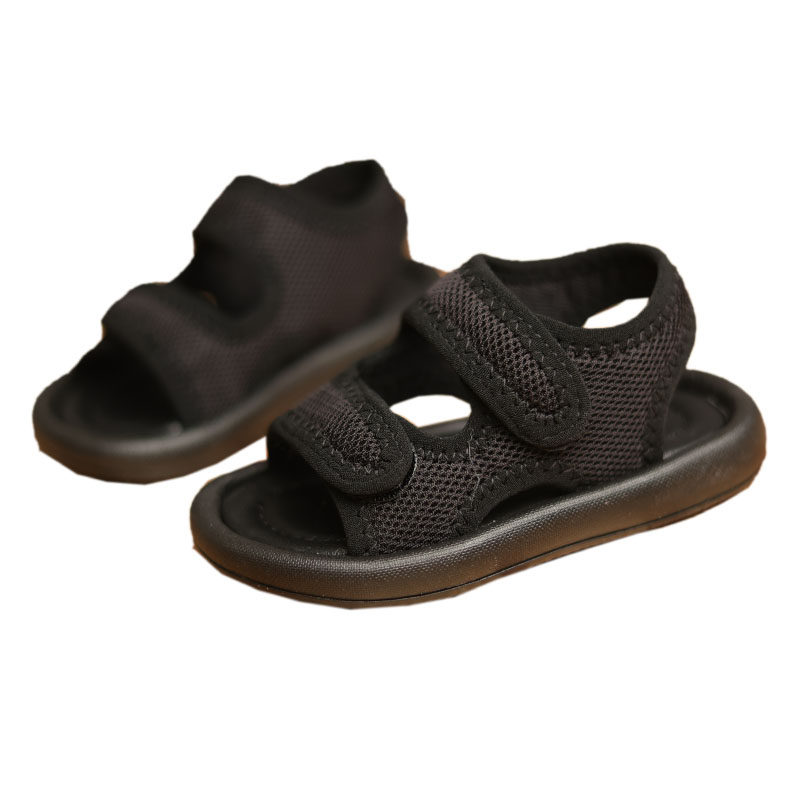 小女童凉鞋春夏季2026年新款中小童运动网凉鞋黑色露趾软底沙滩鞋