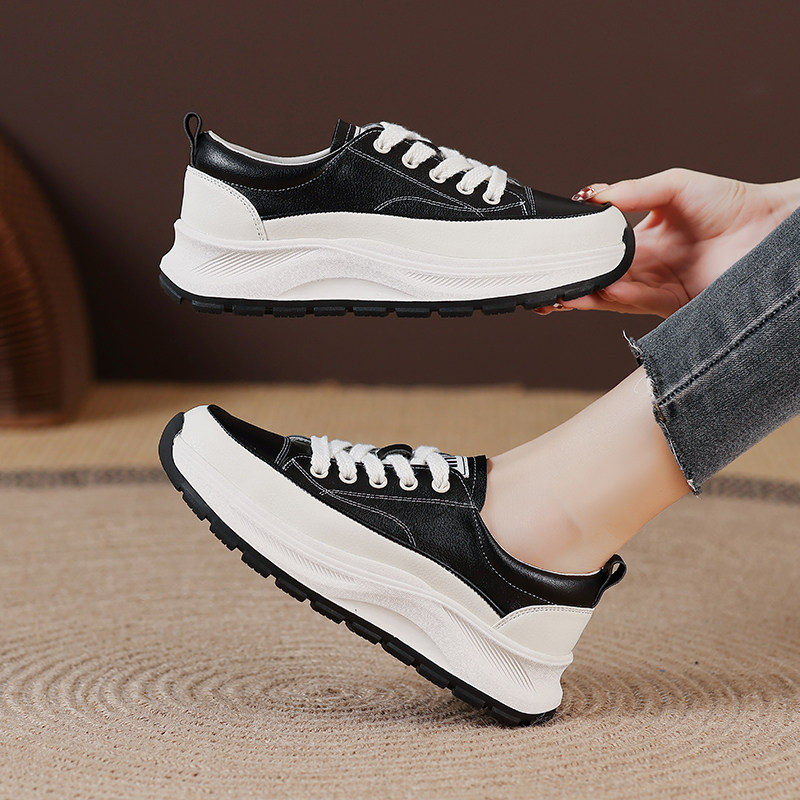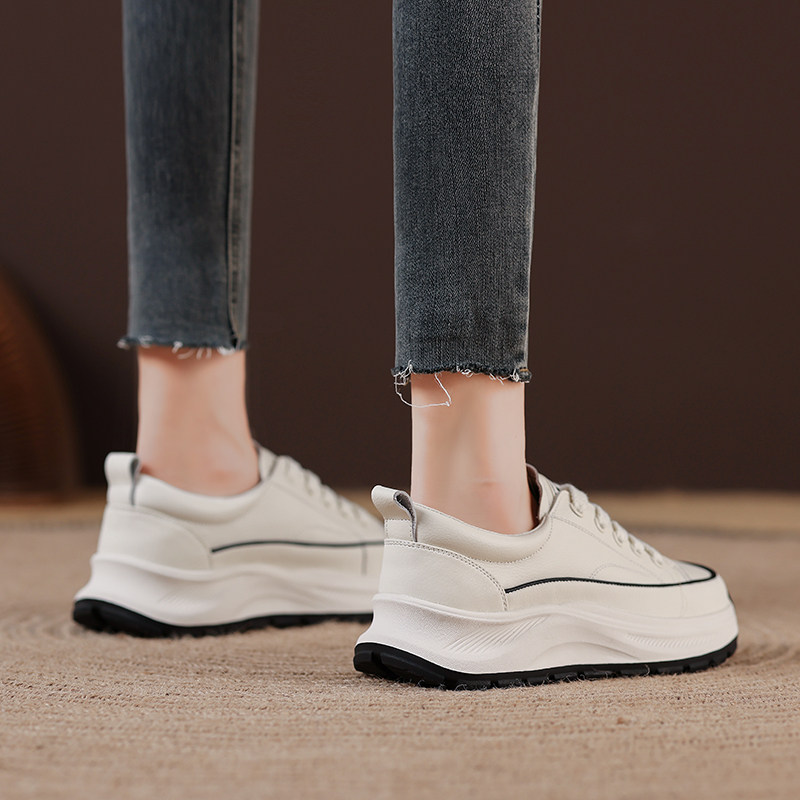 头层牛皮厚底小白鞋子女2026春秋新款百搭平底运动休闲老爹阿甘鞋