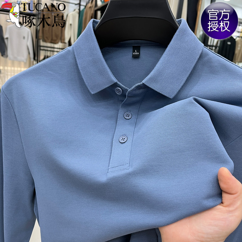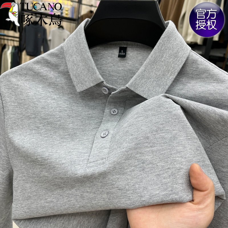 啄木鸟春秋款纯棉polo衫男士长袖t恤翻领休闲商务打底衫上衣男款