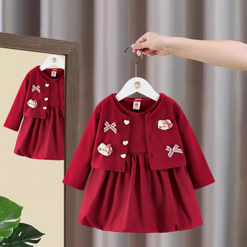 女童连衣裙春装2026新款洋气儿童公主裙套装周岁礼服春秋宝宝裙子
