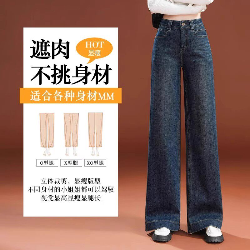 加绒直筒牛仔裤女秋冬季2026新款今年流行爆款复古高腰宽松阔腿裤