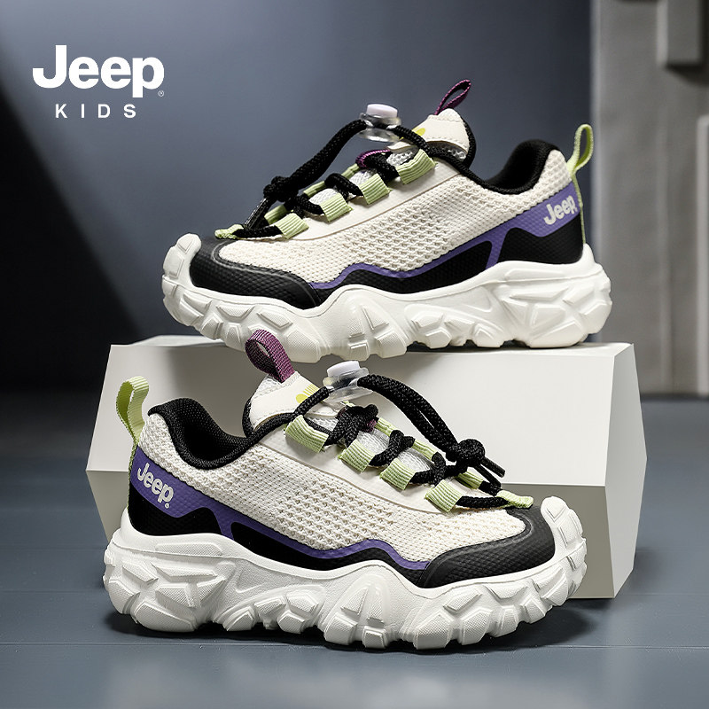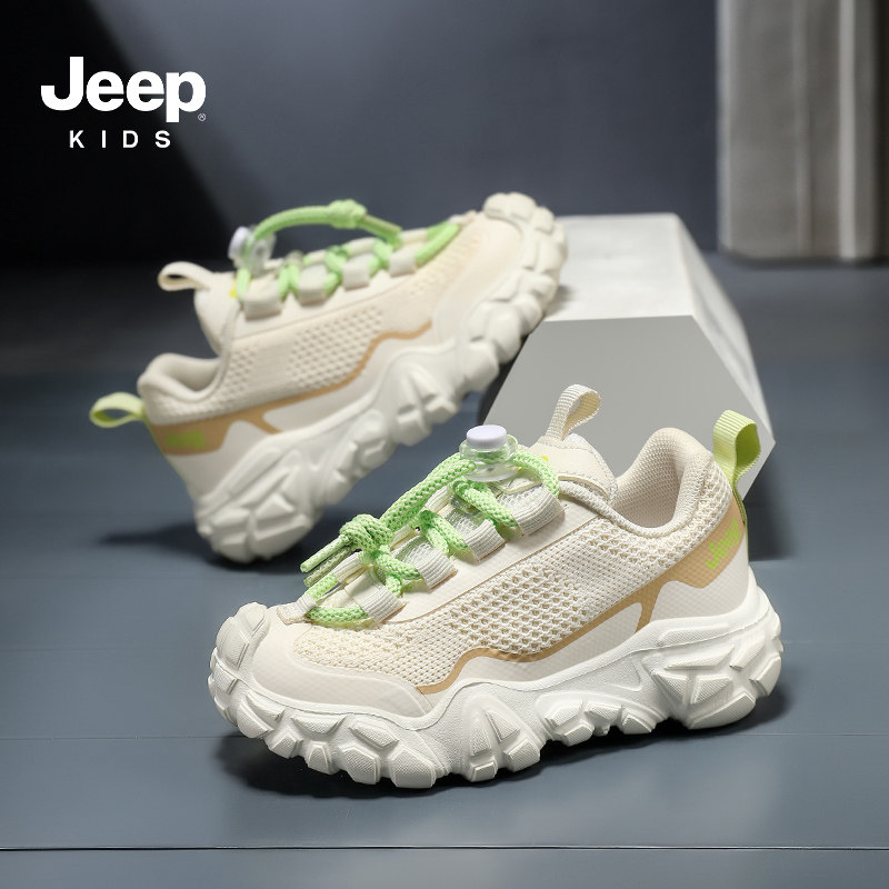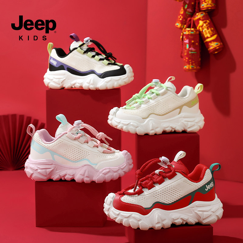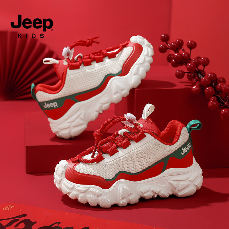 jeep儿童网面运动鞋春季2026新款红色透气女童老爹鞋男童跑步鞋子