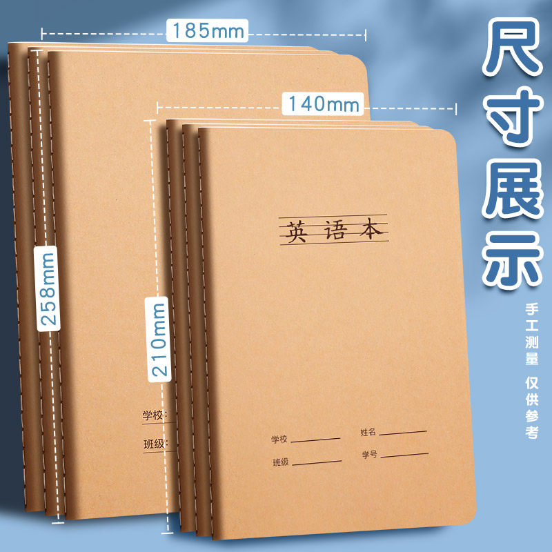 20本英语本子小学生用英语薄拼音本初高中大学生用16k大号英文课作业本练习本牛皮纸加厚日记作文本薄a5