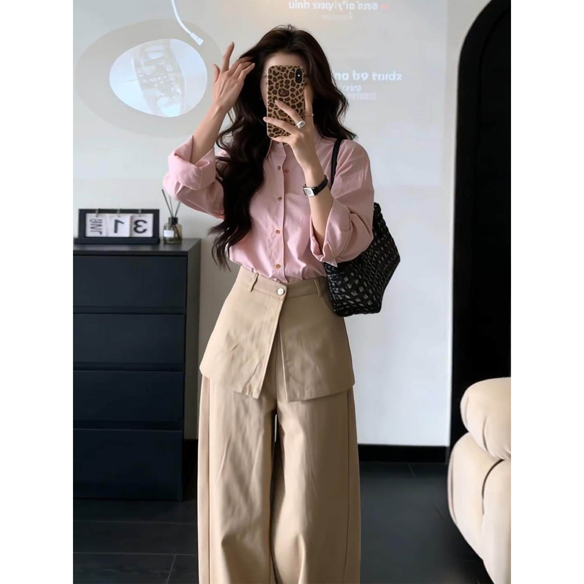 春季穿搭粉色衬衫女早春装2026年新款高级感宽松衬衣外套长袖上衣