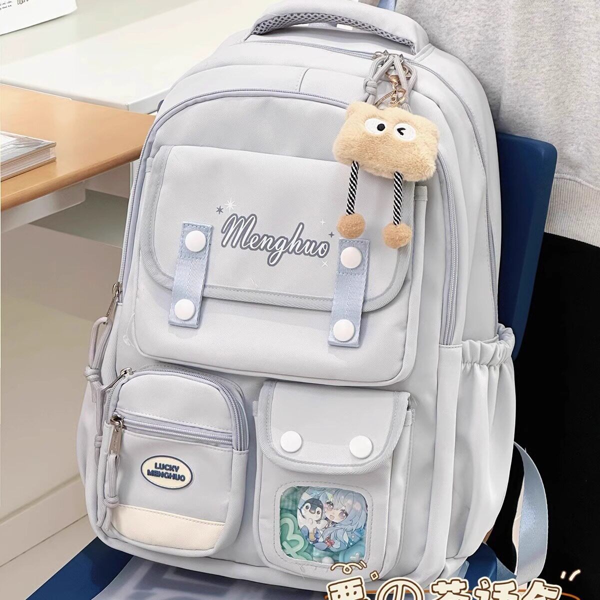 高颜值书包初中女生ins小众蓝色双肩包校园高中生大容量轻便揹包