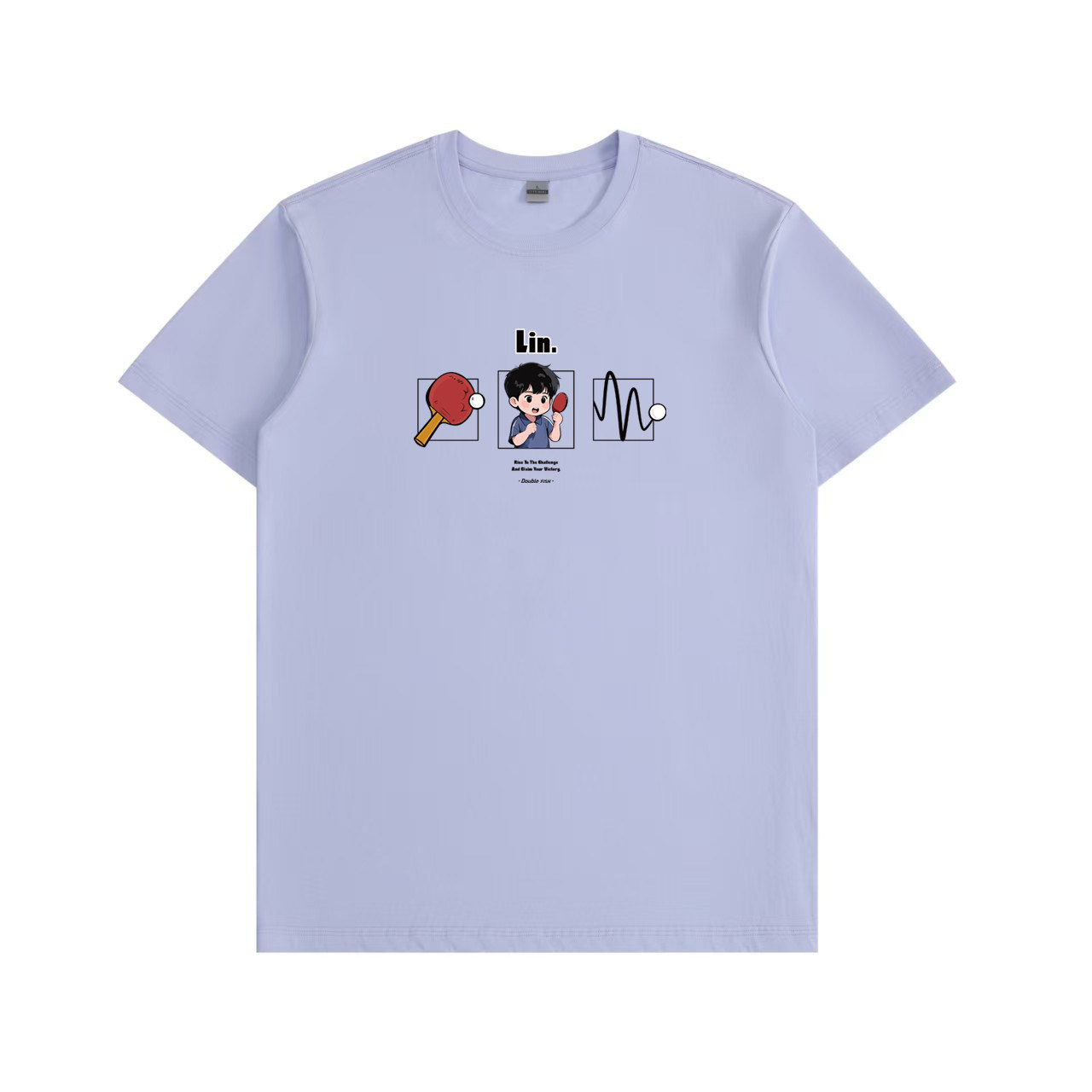 双鱼"LIN"乒乓球服男女同款RF2999卡通纪念短袖T恤衫白色藤萝紫色