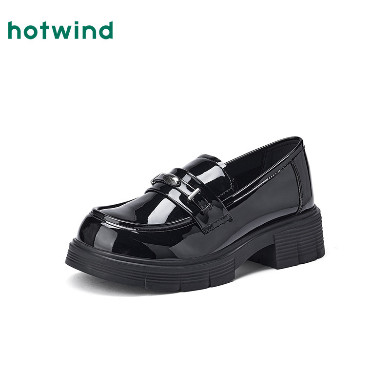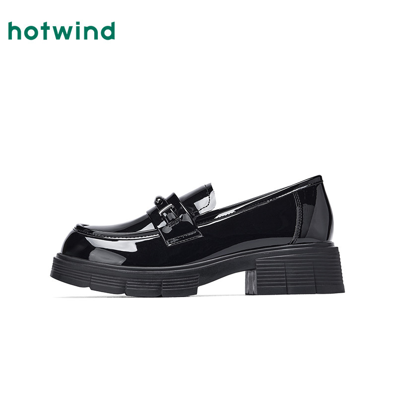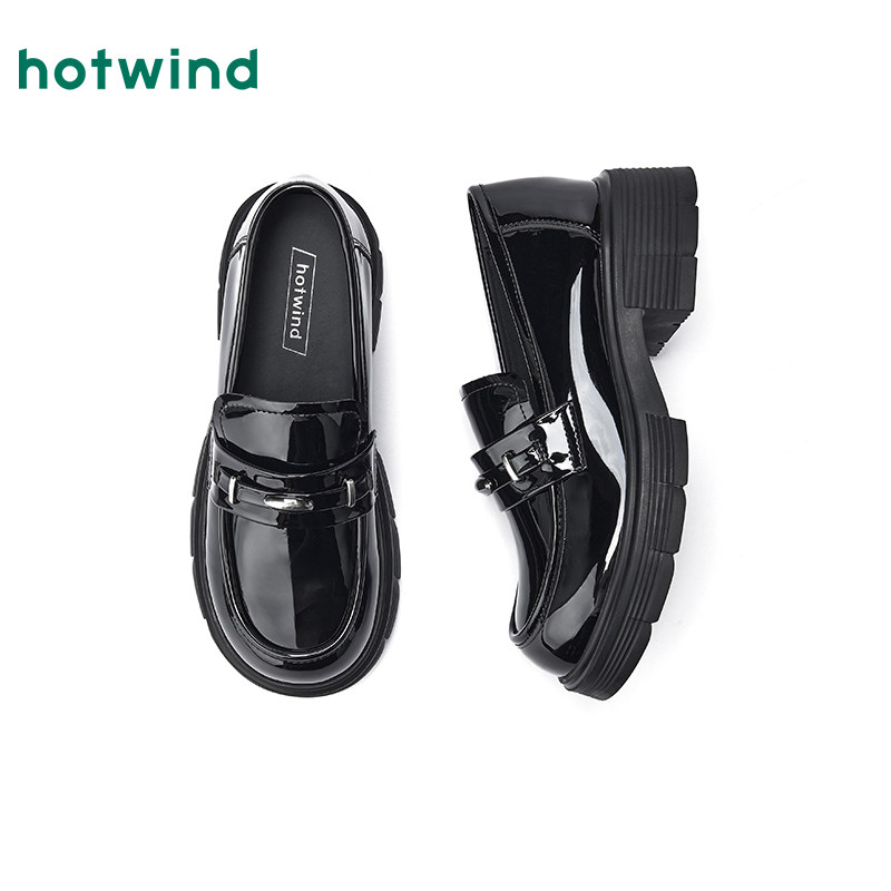 热风黑色小皮鞋女款2025年秋季新款厚底增高乐福鞋通勤百搭女鞋子